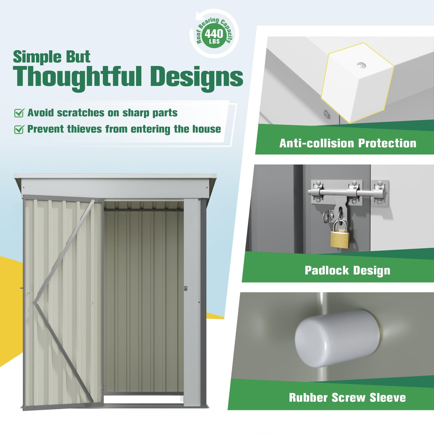 - [Weather Resistant Material] This outdoor storage shed is made of galvanized steel and the special coating layer makes the garden shed not easy to rust and corrosion. Designed for long time outdoor using, make sure the stability of your items.