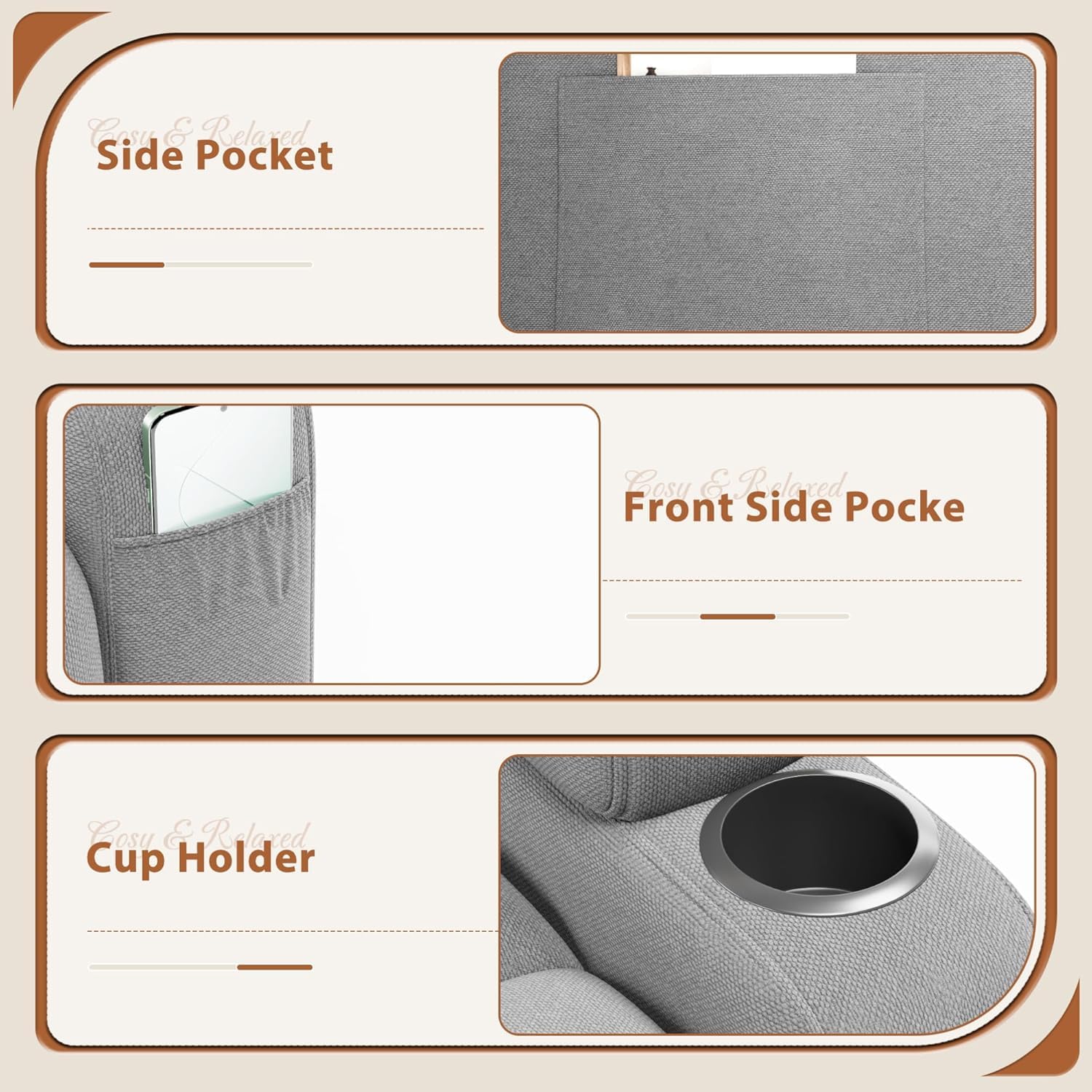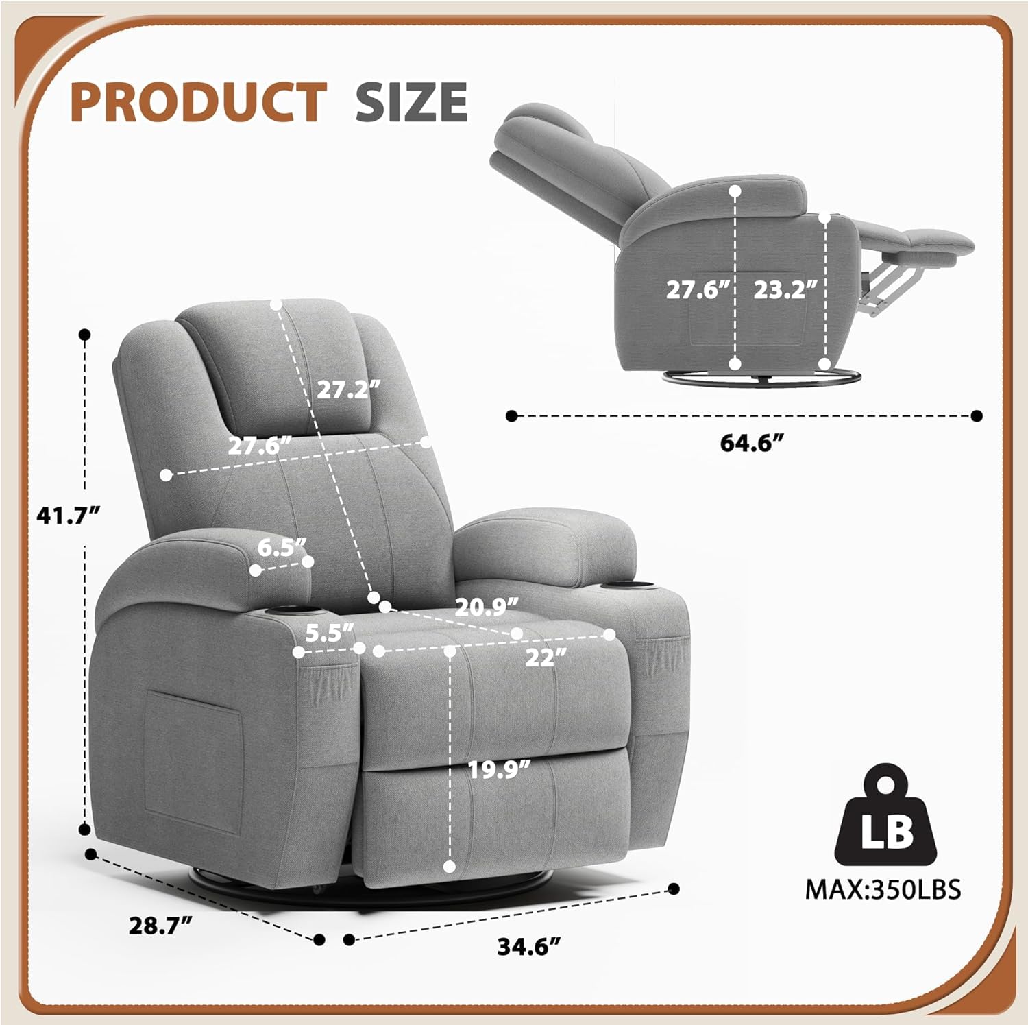 - Convenient Design - The swivel recliner chair is equipped with 4 side pockets and double cup holders. The ingenious storage design enhances the availability of space