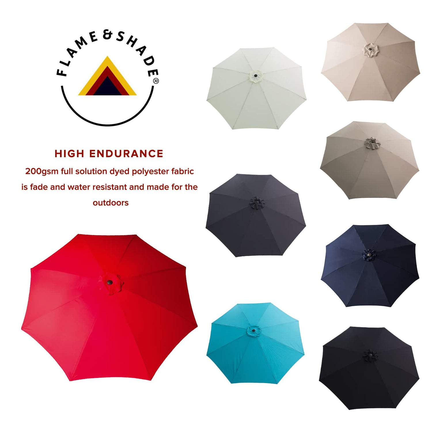 FLAME&SHADE 11 ft Outdoor Market Patio Table Umbrella with Fiberglass Rib Tips and Tilt, Red