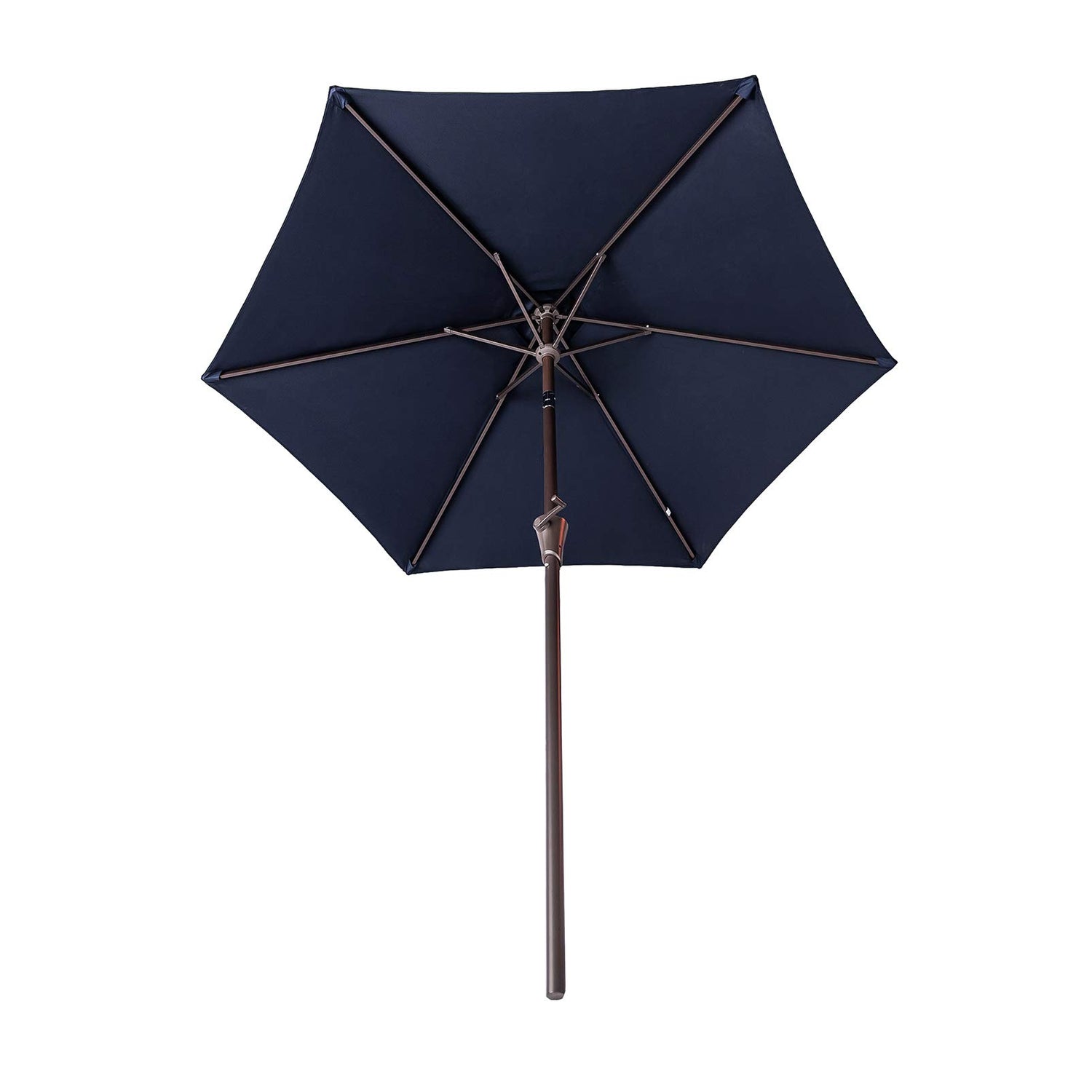 FLAME&SHADE 7.5 ft Outdoor Market Patio Table Umbrella with Tilt, Navy Blue