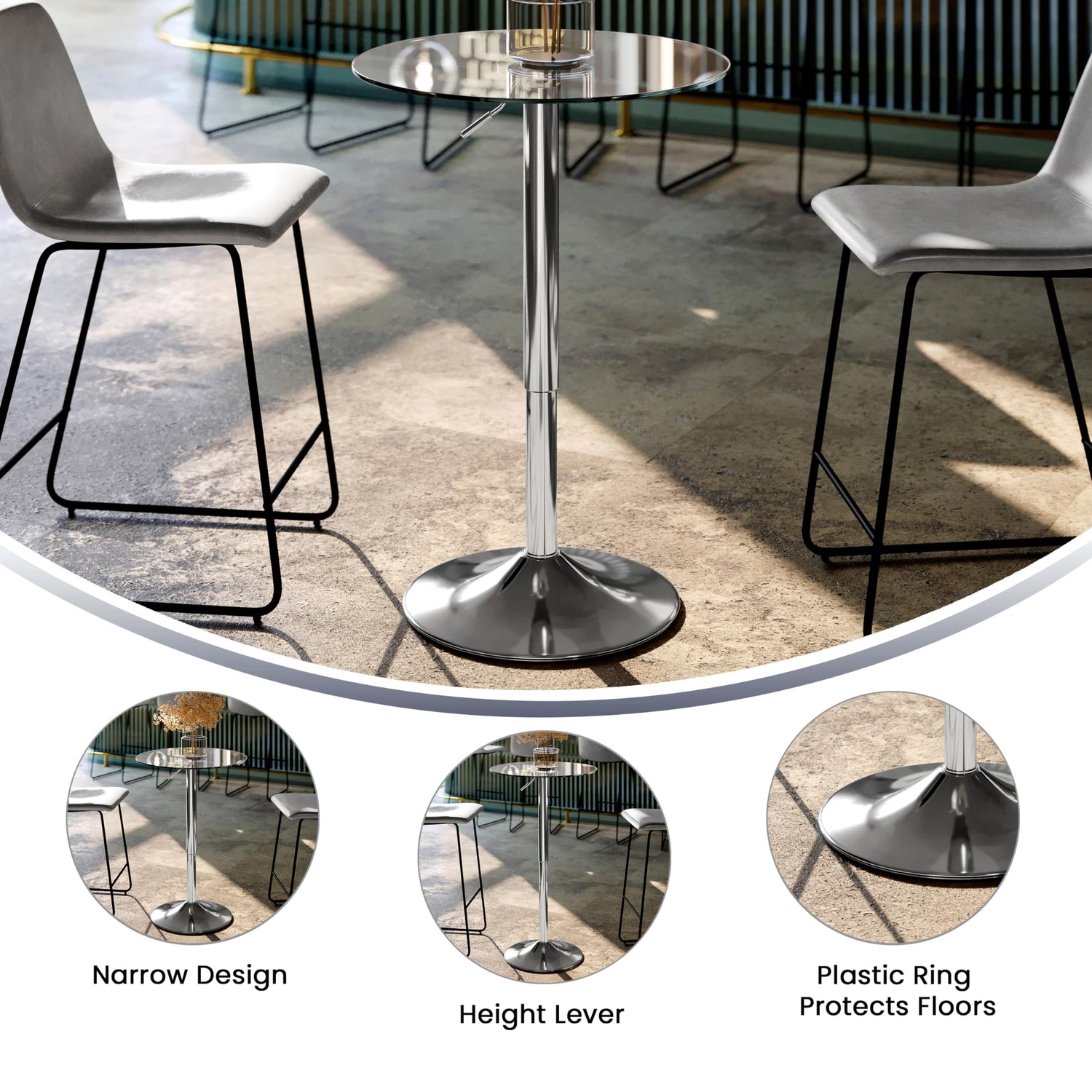 Flash Furniture Chad 23.5'' Round Glass Cocktail Table with Adjustable Height Frame, Bar Height Table for Commercial or Residential Use, Clear/Chrome