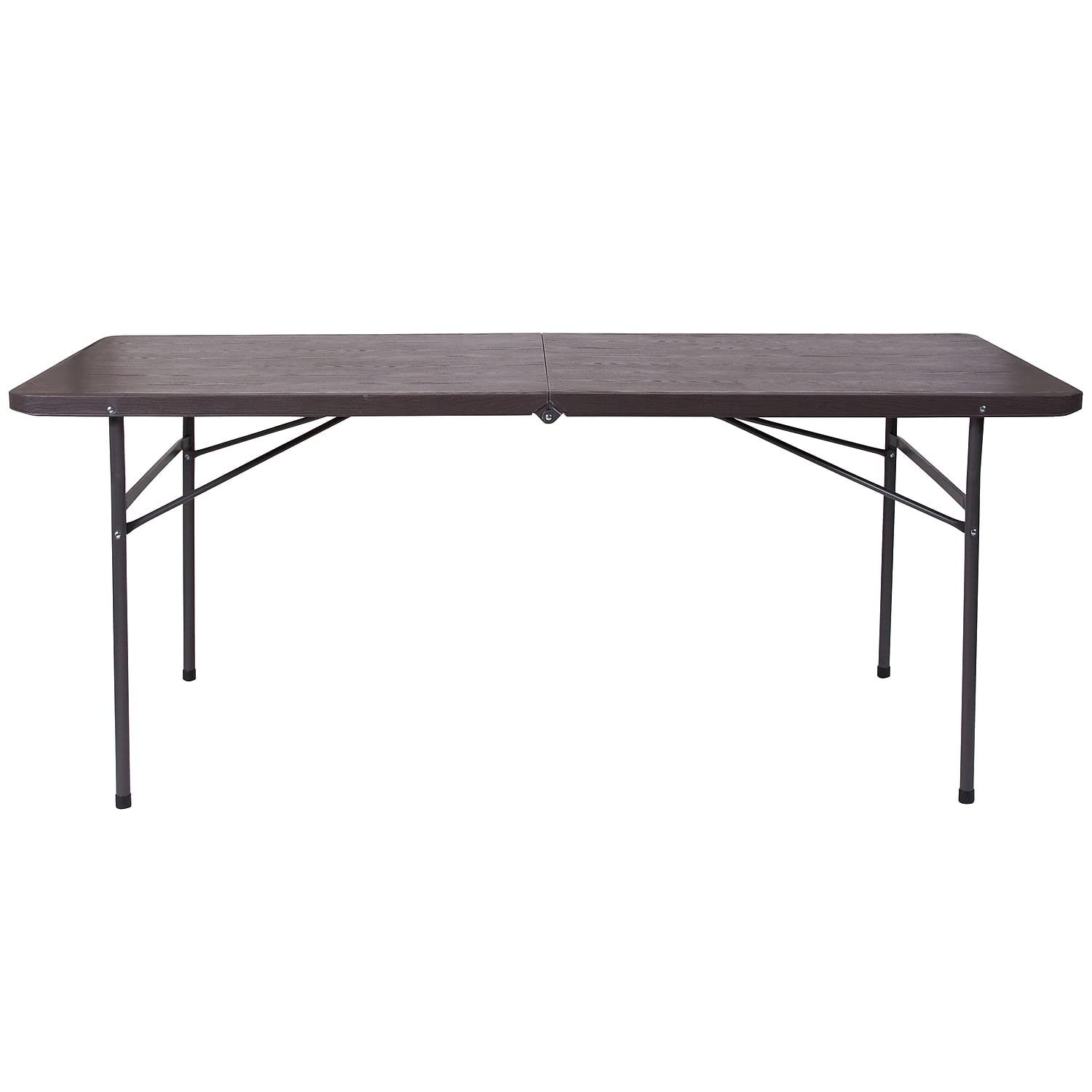 Flash Furniture Elijah 6-Foot Bi-Fold Brown Wood Grain Plastic Folding Table with Carrying Handle
