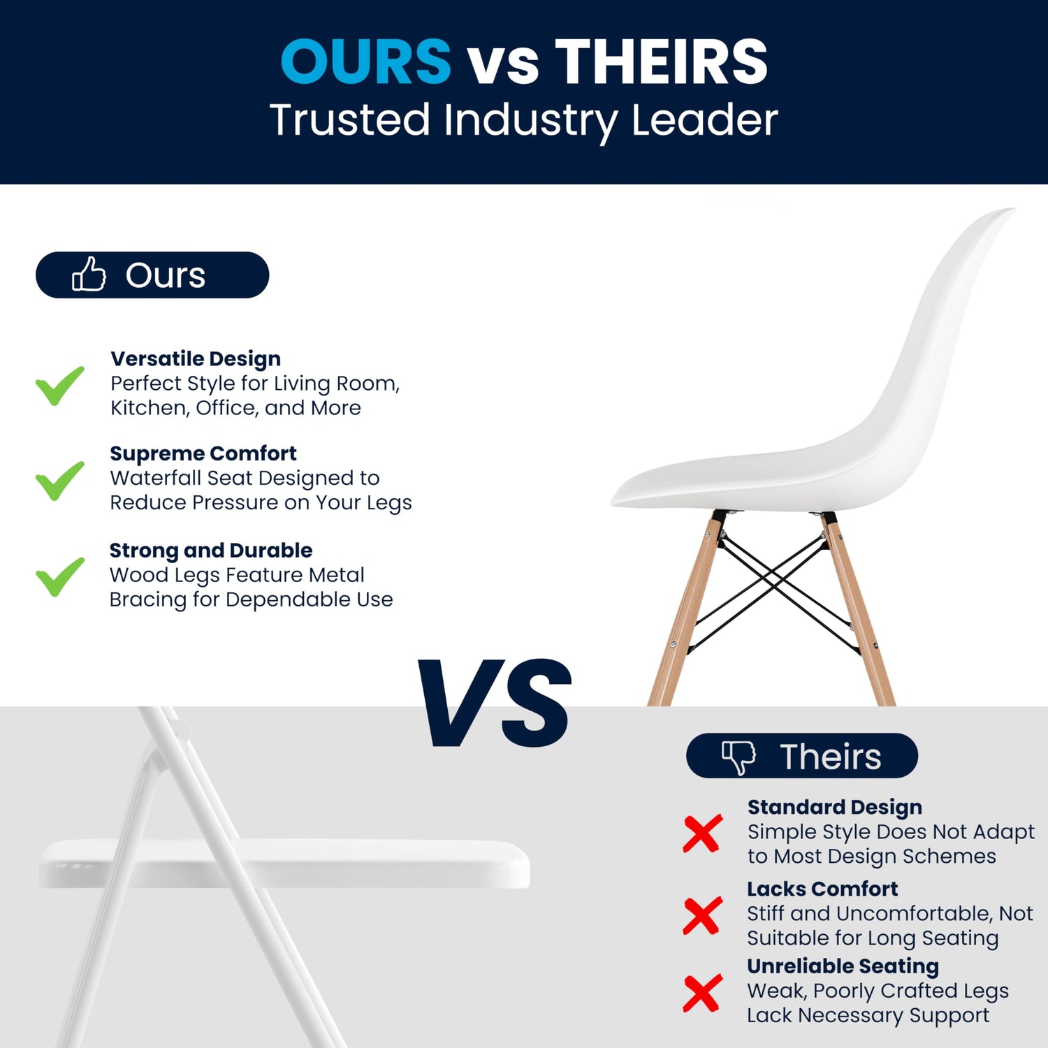 Flash Furniture Elon Series White Plastic Chair with Wooden Legs for Versatile Kitchen, Dining Room, Living Room, Library or Desk Use