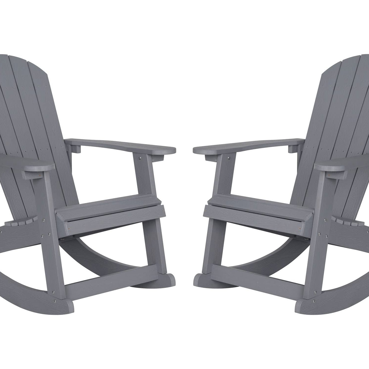 Flash Furniture Savannah All Weather Adirondack Rocking Chairs, Polyresin Wood Adirondack Chair with 350-lb. Static Weight Capacity, Set of 2, Gray
