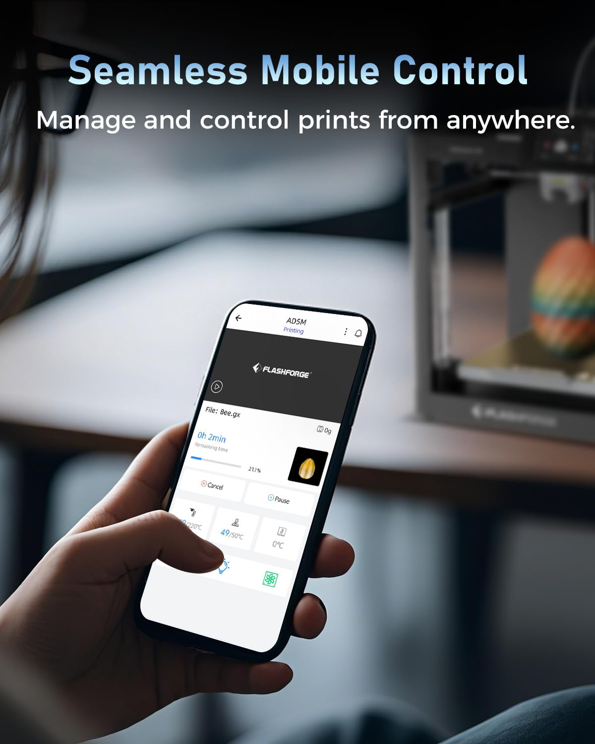 - Smart Control & Print Continuity: Monitor prints remotely via the Flash Maker app with real-time updates and parameter adjustments. Enjoy smooth workflows with power loss recovery, filament runout detection, and object skipping for multi-part jobs.