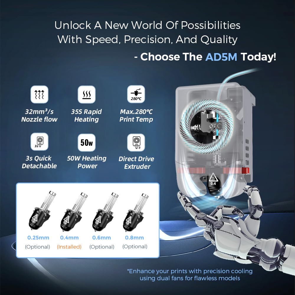 - 【Vibration Compensation&Less Waiting Time】Vibration compensation, eliminating ghosting in prints. Nozzle with a flow of 32mm³/s, 50w heating power, 200℃ heating up in 35 seconds. Precise and consistent extrusion for smooth and no-blur prints.