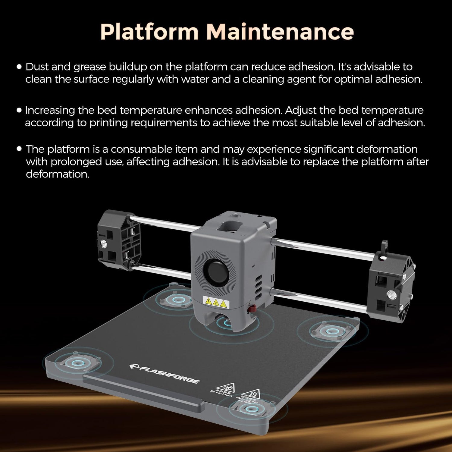 FLASHFORGE Adventurer 5M Series Smooth PEI Platform, Tool-Free Model Removal, Automatic Separation After Cooling, Glue-Free Printing for PLA and TPU Filament