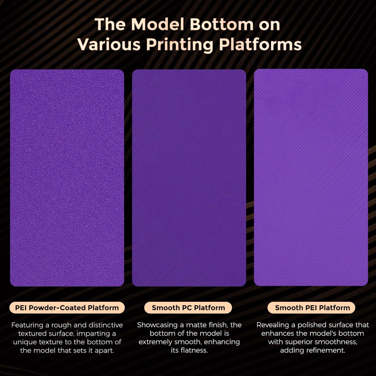 - Multi-Platform Options: PEI Powder Coated, Smooth PEI, and Smooth PC plates. Tailor your 3D printing experience by choosing the perfect platform to meet your unique needs.