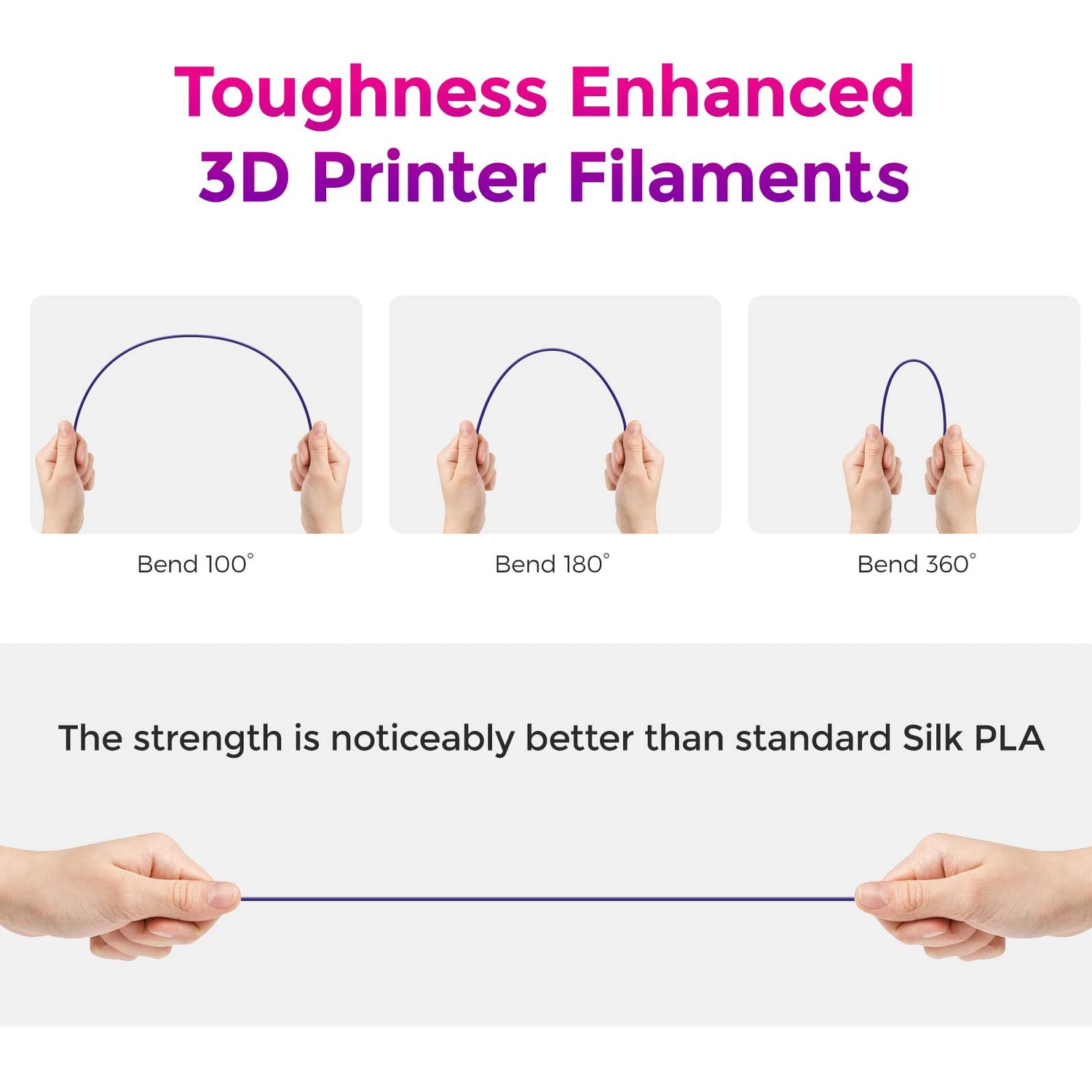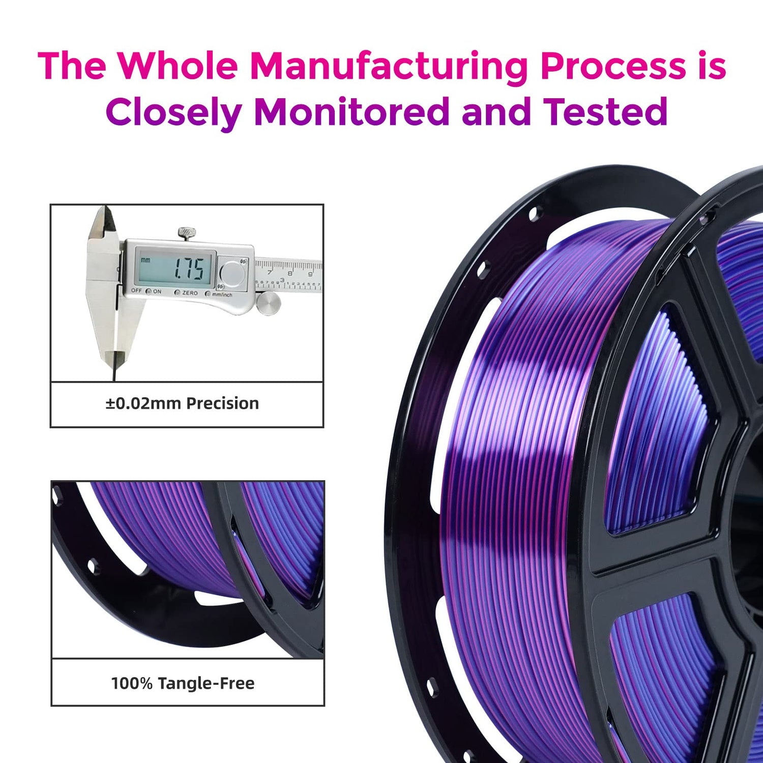- Silk Dual Color Filament: Blue and Rose 2-in-1 Filament, every inch has has two colors. This gives your prints not only a smooth and shinny appearance, but also a unique color pattern and effect.