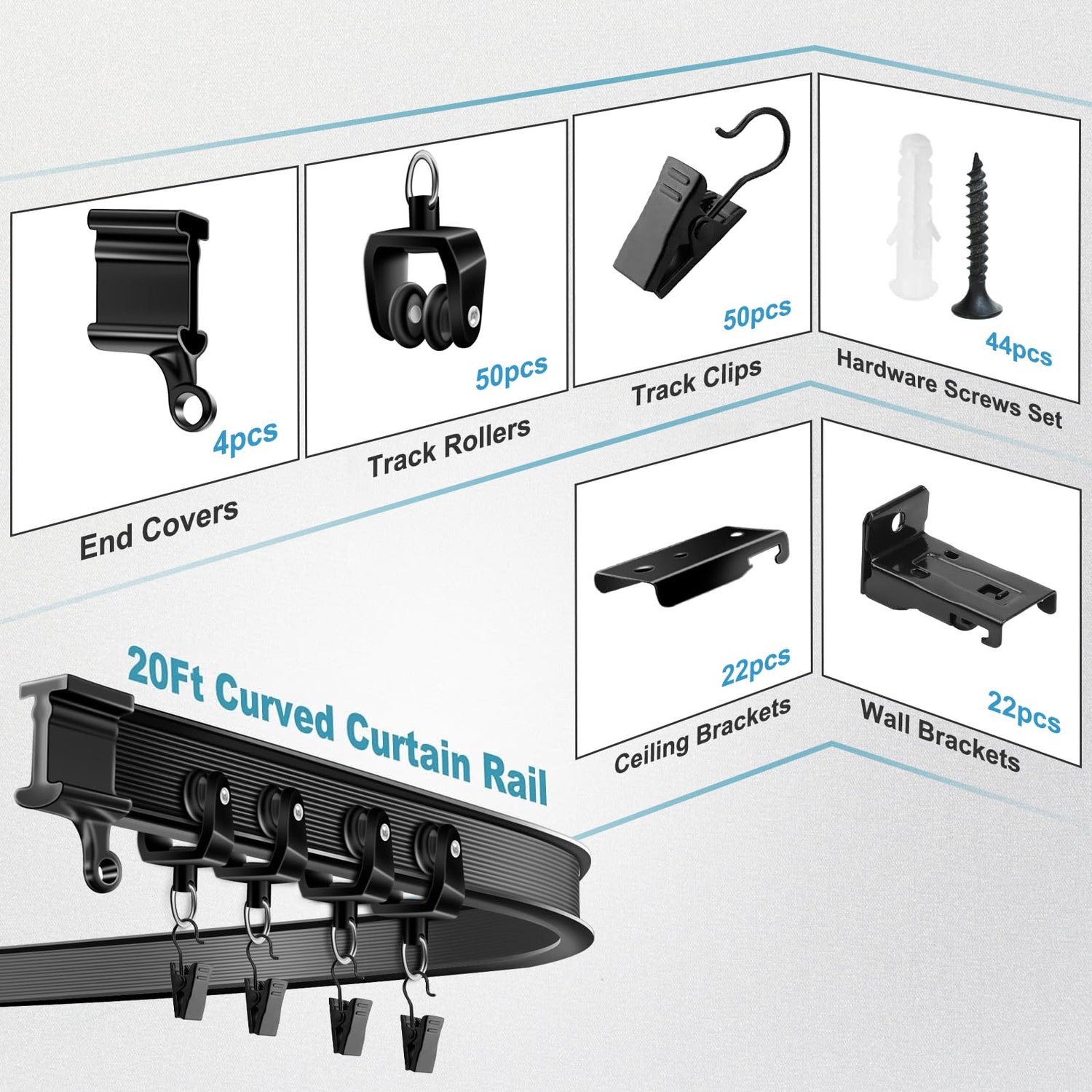 • [SLIDE SMOOTHLY] -- Curtain track system comes with durable track rollers, lightweight but excellent quality, glide quietly and smoothly, running without disturbing your family and baby. Curtain ceiling track also equips stainless steel curtain track clips instead of S-shaped curtain track hooks, stronger bite force to clamp drapes firmly, don’t fall off.