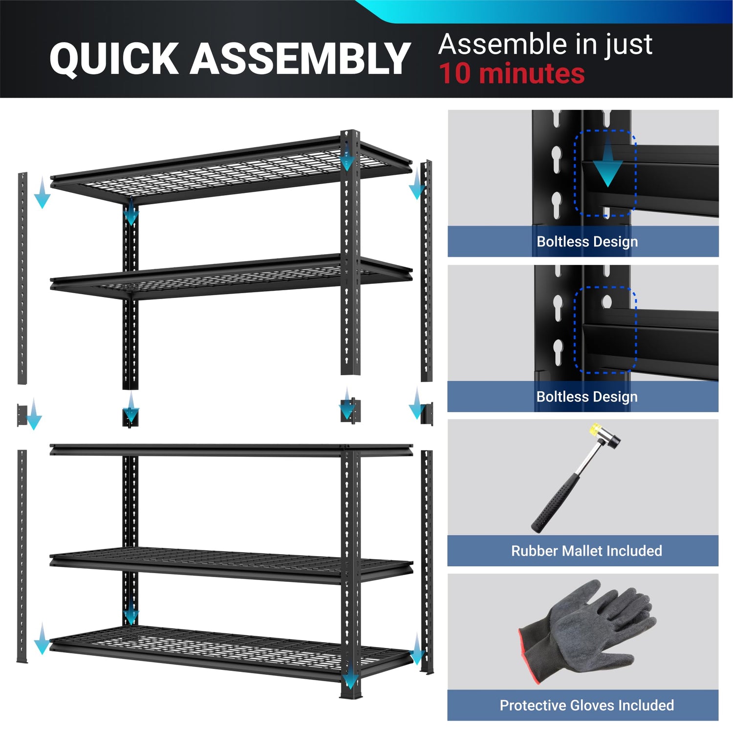 - Heavy Duty Capacity: This metal shelf can easily hold up to 3000 lbs with each shelf rated for 600 lbs. Steel post connectors provide superior strength and stability for all your storage needs.