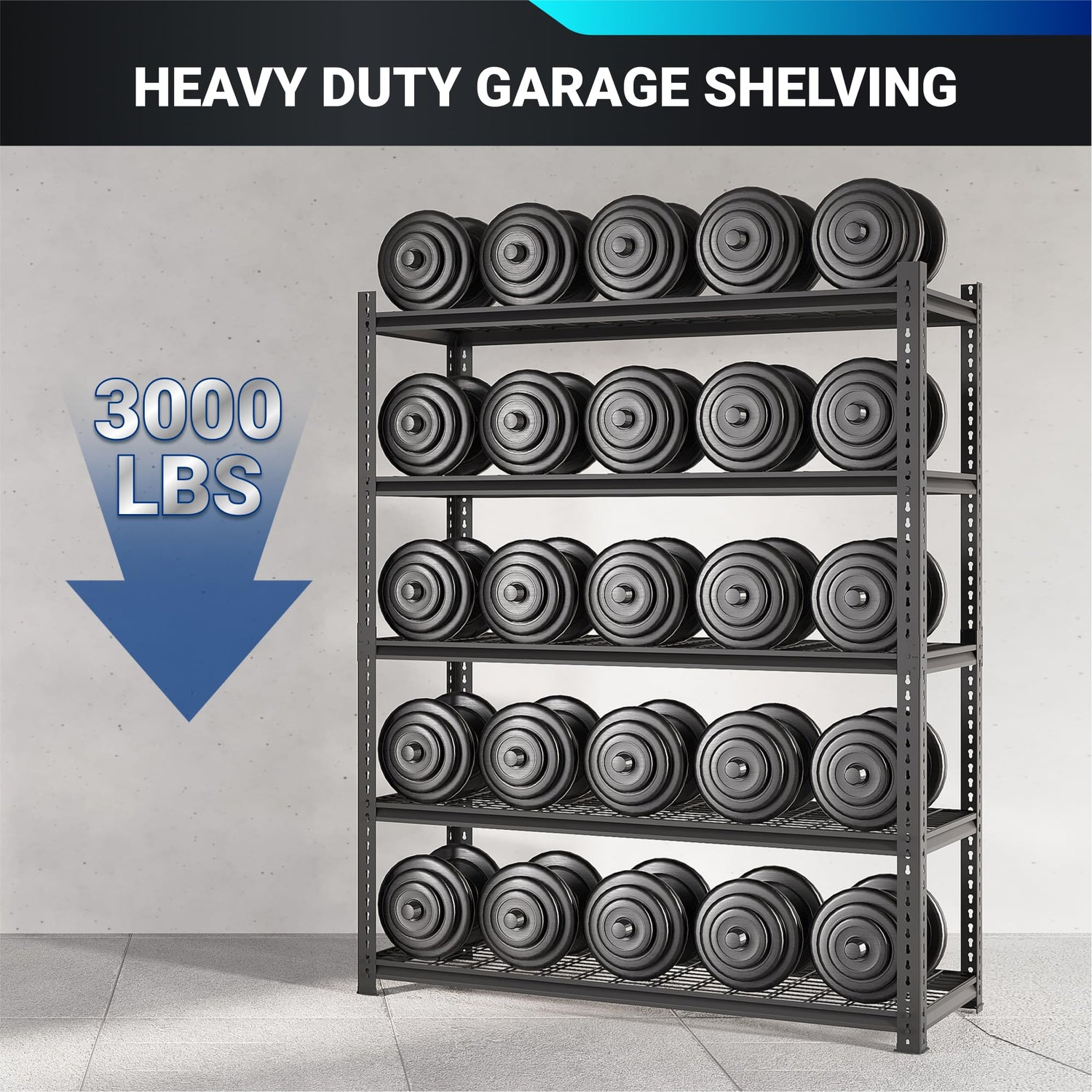 FLEXIMOUNTS Garage Shelving, Storage Racks and Shelving, 3000 lbs Basement Storage Shelves, Garage Storage Shelves, 5-Tier Metal Shelf, 48" W x 24" D x 72" H