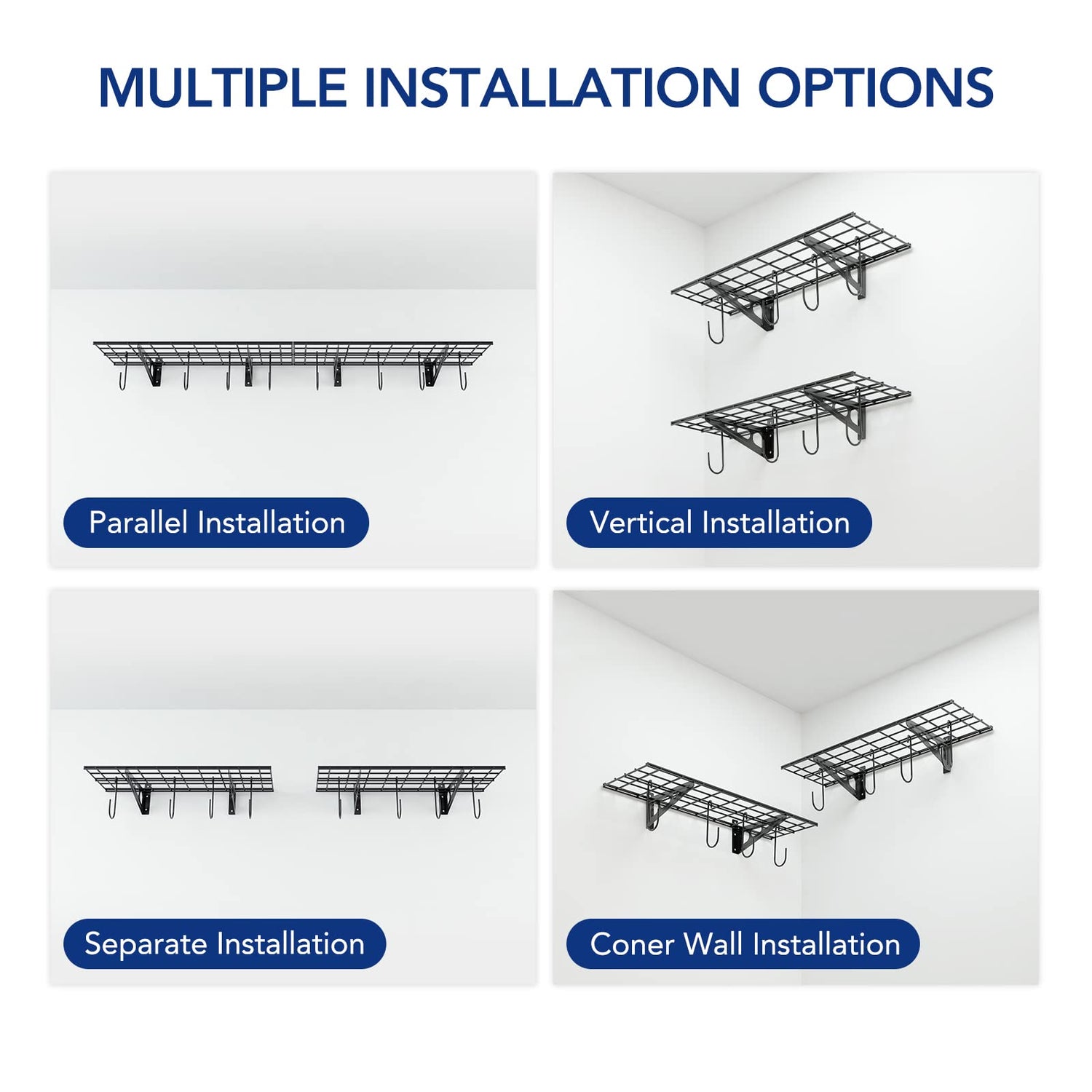 - DIY ASSEMBLY: Wall garage shelving can be installed according to your personal preference. Remove or replace storage hooks as needed.