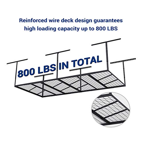 - HEAVY DUTY:Thicker M8 screws selected and all hardwares have gone through strict tests.Reinforced hanging garage storage wire deck design guarantees high loading capacity up to 800lbs.