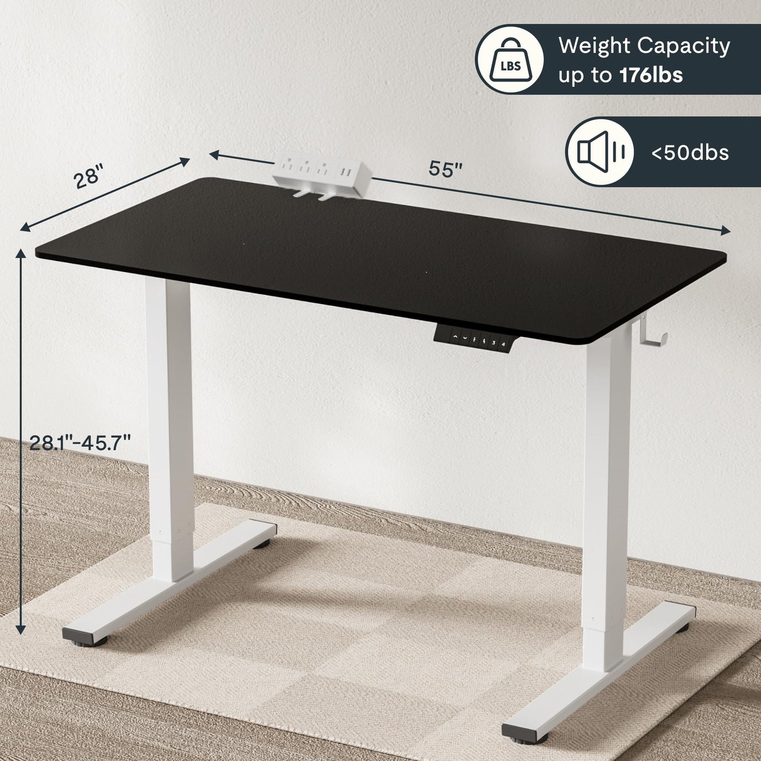 - AMPLE WHOLE-PIECE DESKTOP: With its expansive 55” x 28” eco-friendly desktop, this standing desk provides generous space for dual monitors, a laptop, and more, empowering you to tackle any work task with confidence. Please allow for a slight 0 to 1-inch variance in desktop size due to manual measurement.