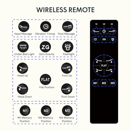 - Customizable Comfort: Tailor your perfect sleep or lounge position with ease. Adjust the head from 0–60° and the foot from 0–45° to find your ideal angle for reading, watching TV, or resting. All functions are seamlessly controlled with the intuitive wireless remote that responds instantly to a single tap. (Adjustable bed base only.)