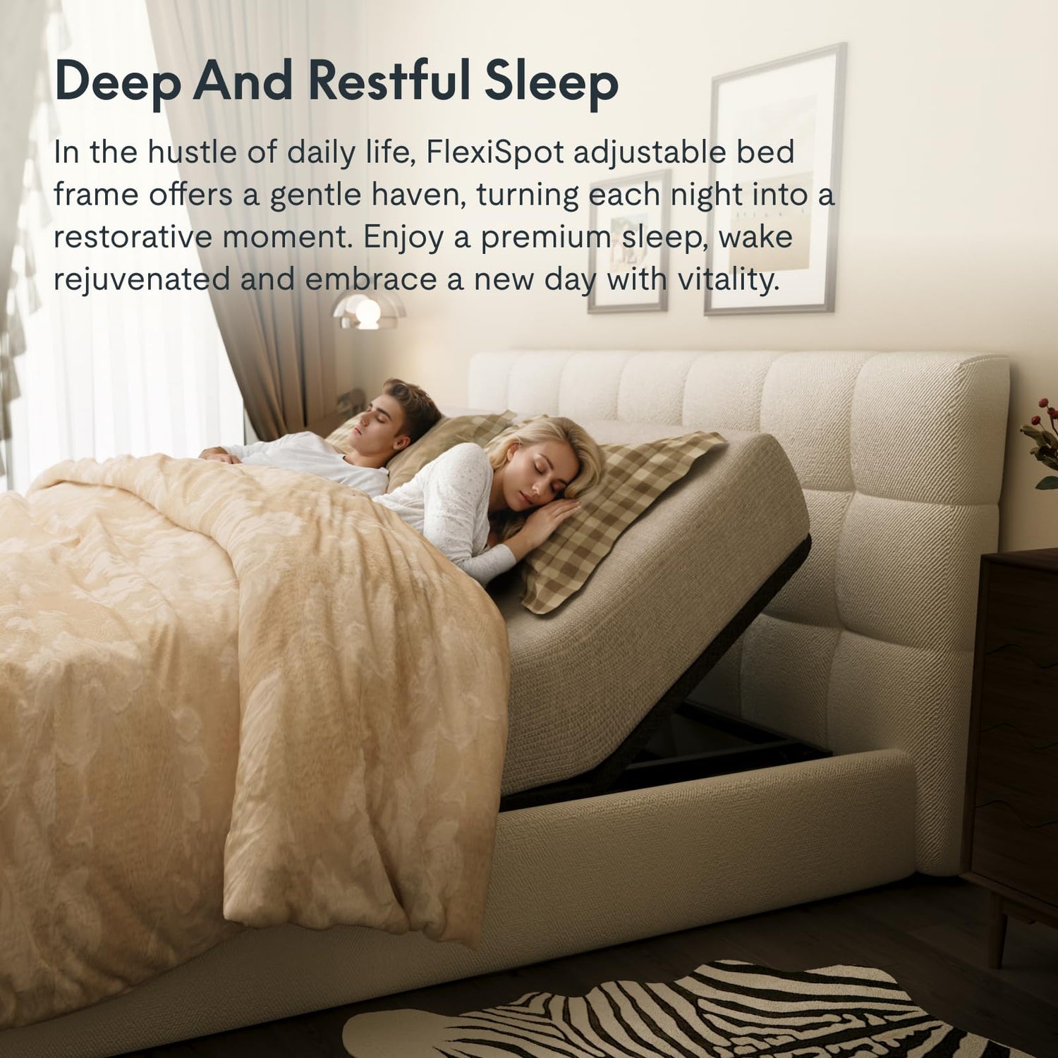 - - BETTER SLEEP QUALITY: Enhance your lifestyle and well-being with FlexiSpot adjustable bed frame. This remarkable adjustable bed frame provides numerous advantages, including alleviating snoring, reducing back pain, minimizing swelling, enhancing heart health and breathing, and relieving symptoms of acid reflux. Embrace a restful sleep experience with the FlexiSpot adjustable bed frame.