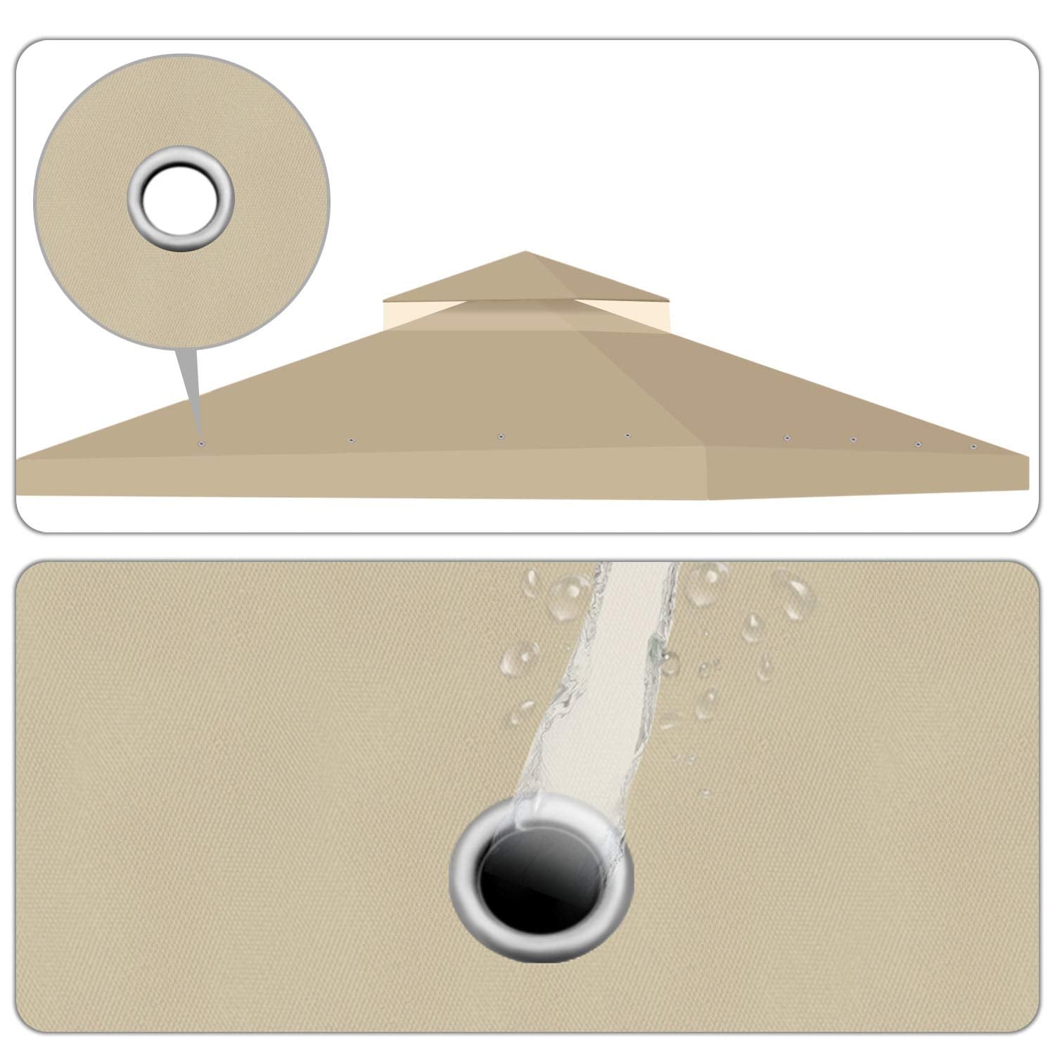 Flexzion 10'x10' Gazebo Replacement Canopy Top Cover (Beige) - Dual Tier with Plain Edge Polyester UV30 Water Resistant for Outdoor Garden Patio Pavilion Sun Shade