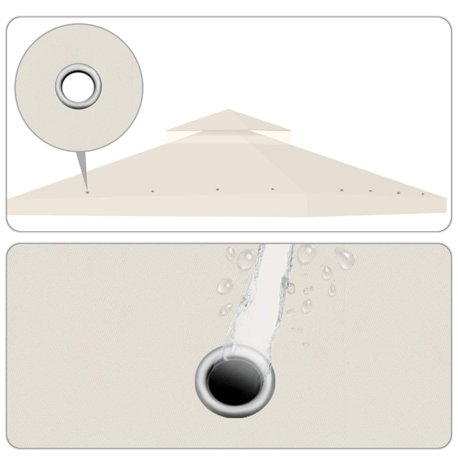Package Content: 1x 8x8 Gazebo Canopy Replacement Top Waterproof Cover - Outdoor Gazebo Canopy Cover - Double Tier UV30 Cover for Canopies, Garden, Patio, Yard Tent (Ivory)