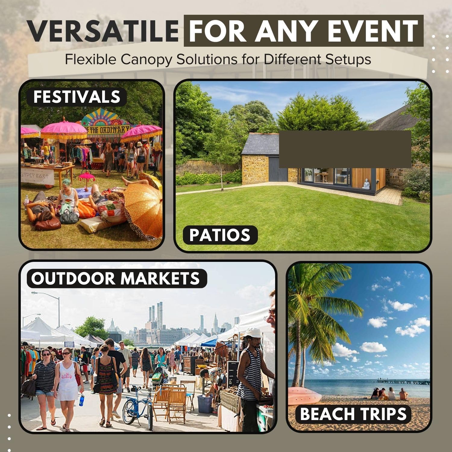 - Outdoor Use - This outdoor canopy replacement tent is ideal for outdoor patio recreational activities, commercial activities, outdoor celebrations, birthday parties, events, picnics, barbecues, and social activities