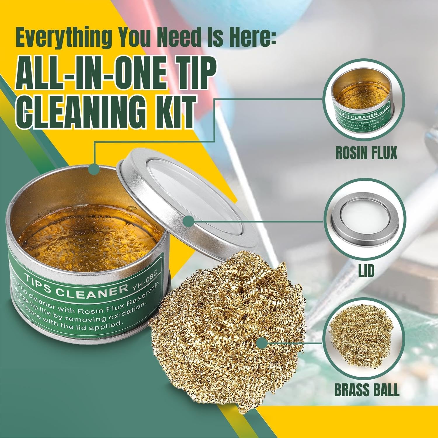 - Deep Clean Action: The rosin flux and brass soldering wire sponge work together and dig deep to remove all residues, promising a shiny, good-as-new tip after every clean