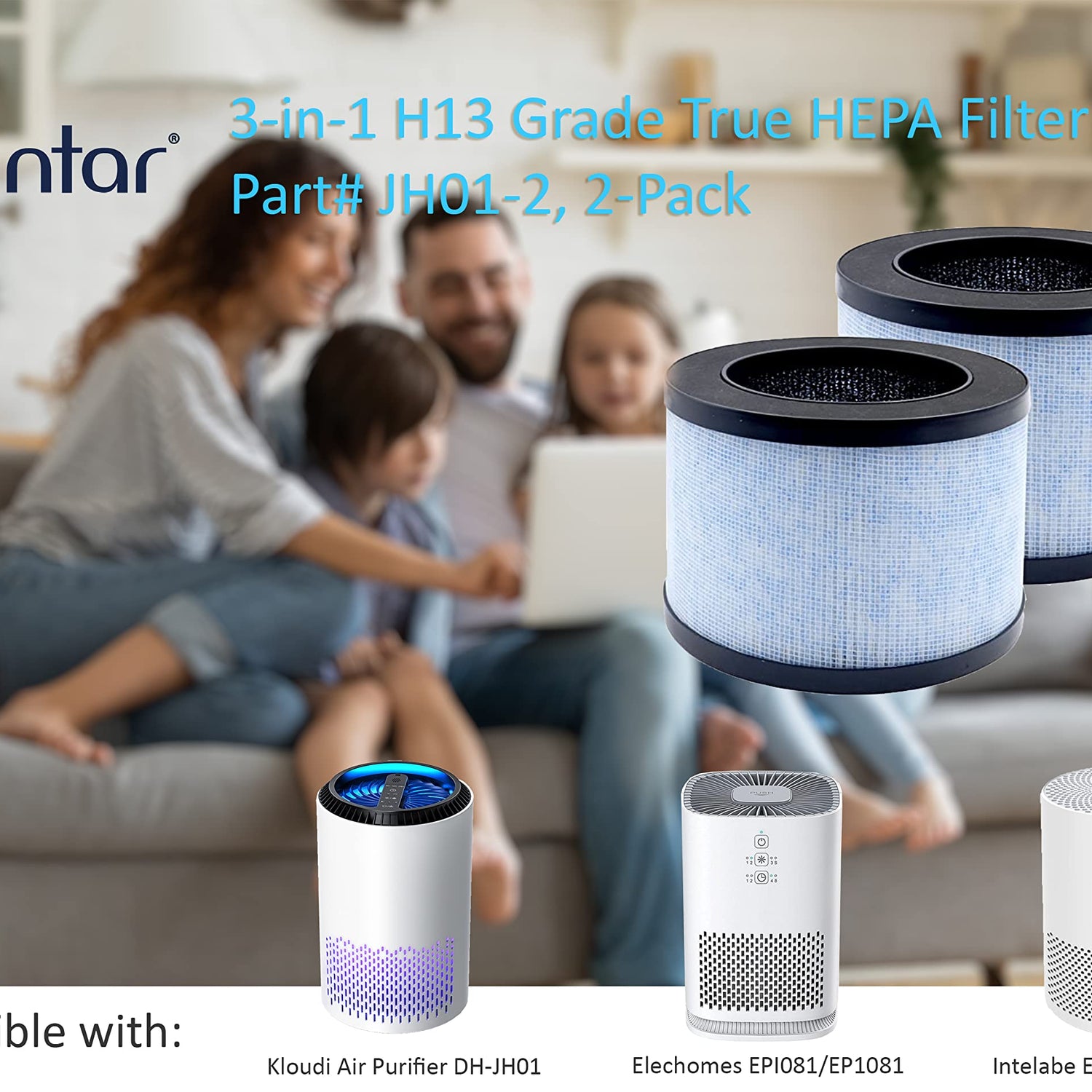 Flintar True HEPA Replacement Filter, Compatible with AROEVE MK01 MK06 and Kloudi Air Purifier DH-JH01, TZ-K1, Intelabe EPI080, and Elechomes EPI081, H13 Premium True HEPA Filter, 2-Pack