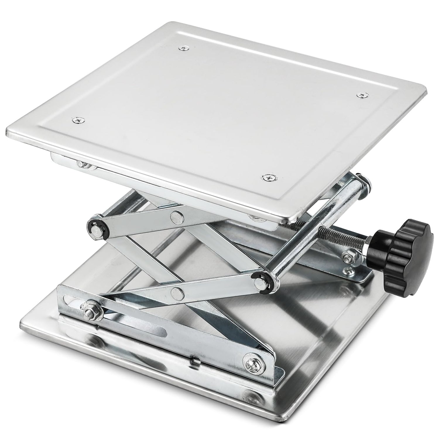 FLKQC Lift Table Lab Stand Lifter, Scissor Lifting Jack Platform 8"X 8", Stainless Steel Laboratory Support Jack Platform with Black Hand Wheel, Expandable 85mm to 280mm