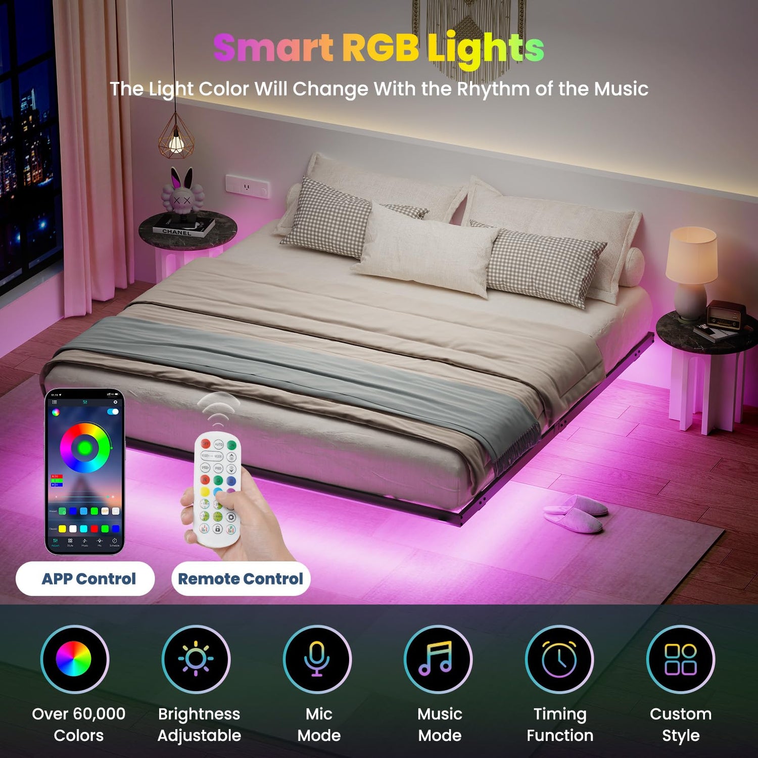 LUSIMO King Size Floating Bed Frame with LED Lights & Under-Bed Storage, Heavy Duty Metal Platform, 12 Inch Height