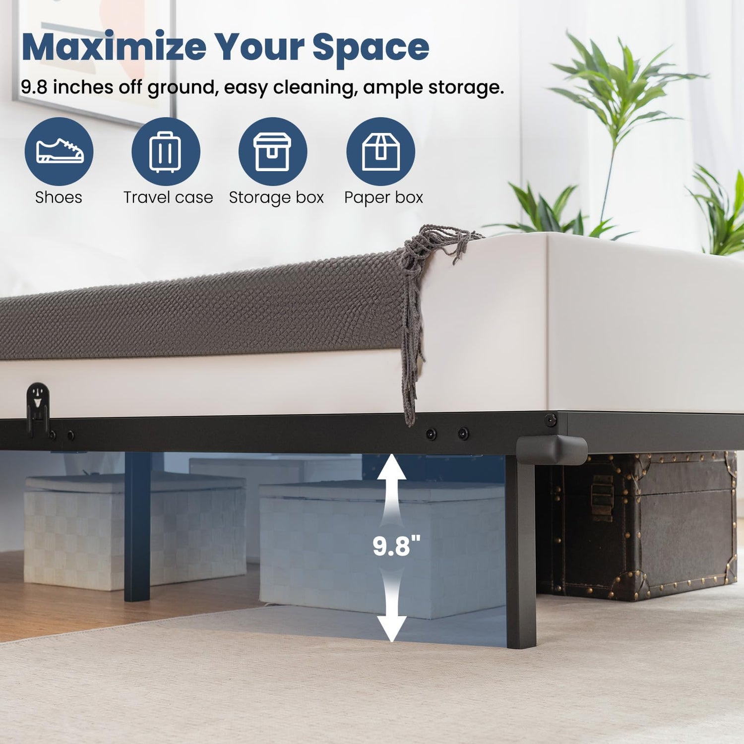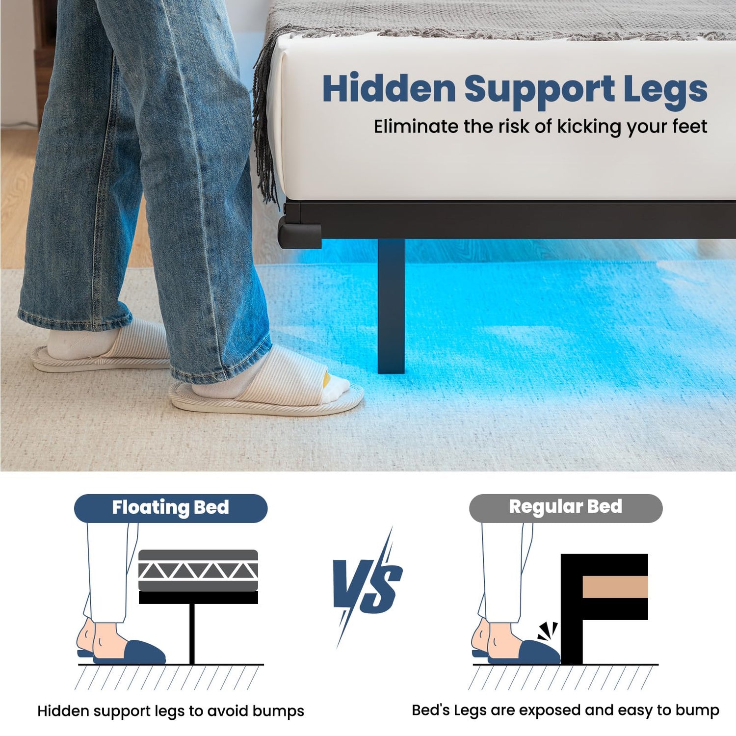 The LUSIMO Twin Floating Bed Frame also offers practical under-bed storage. With 9.8 inches of space beneath, you can easily store linens, clothing, and other essentials, helping to maintain an organized and clutter-free bedroom.