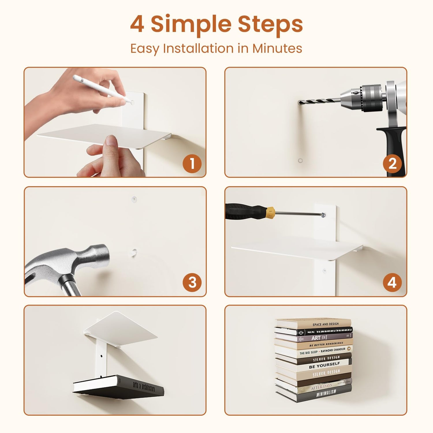 - Sturdy & Durable: Crafted from heavy-duty steel, these wall bookshelves resist warping, cracking, and fading. Each invisible bookshelf floating unit holds 30 lbs—ideal for hardcovers or decorative items, outlasting flimsy alternatives