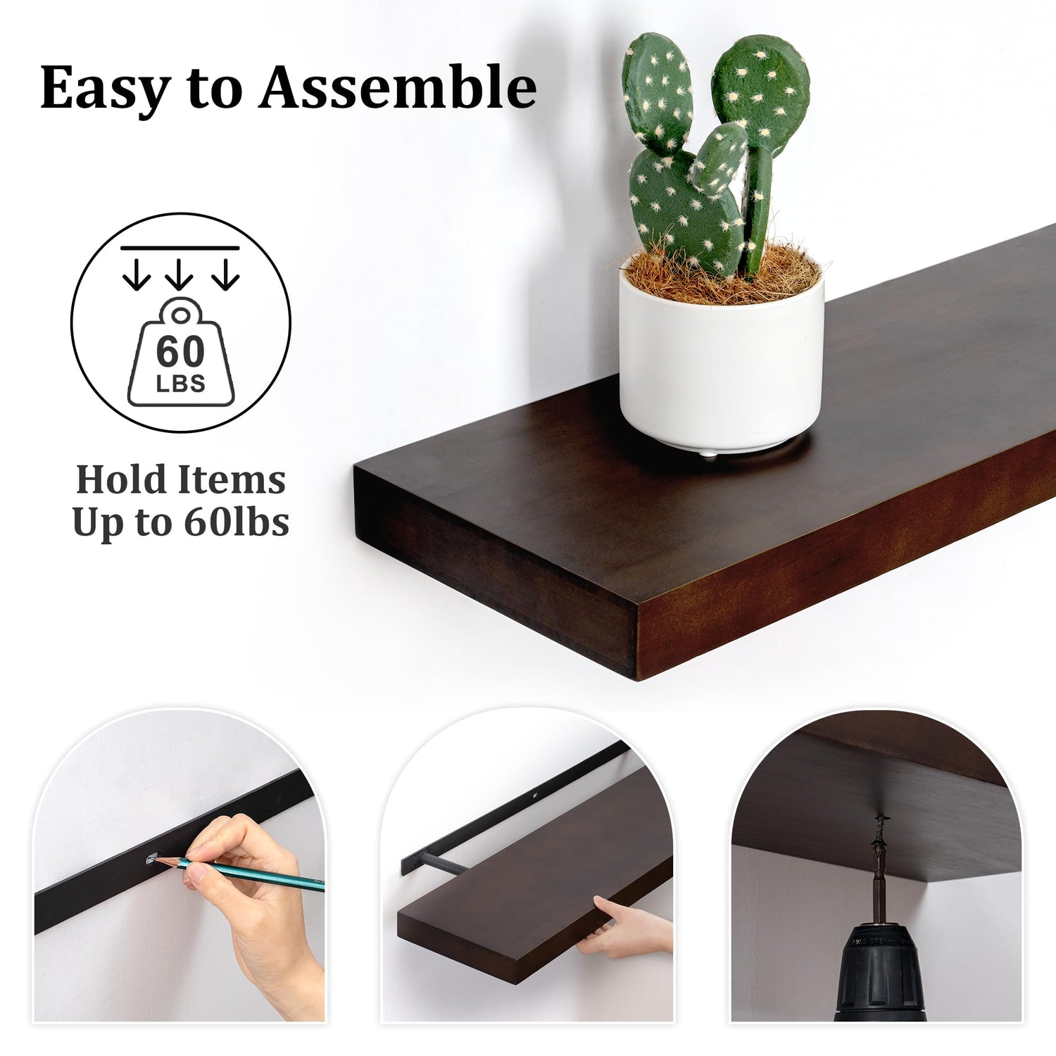 - 【Easy To Install】The one-peice bracket of wall shelves will make installation easier, and you can definitely complete the installation easily and smoothly by following our clear and detailed instruction. This is a real floating shelves as the mounting bracket will be hidden and invisible!