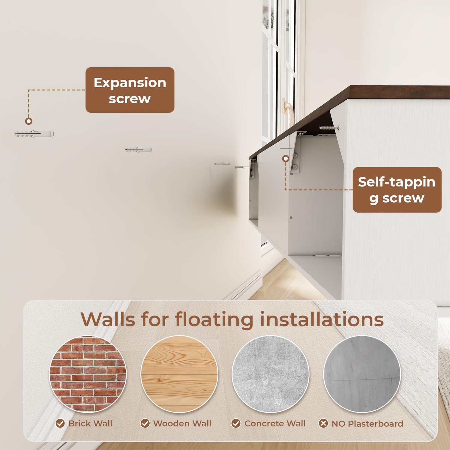 - [Easy Installation] This floating entertainment center requires no special tools to install, a screwdriver is included in the package and all parts of the floating tv stand are numbered and an easy to follow manual, making installation a breeze. If you encounter any problems, please contact us; We will solve all problems within 24 h.