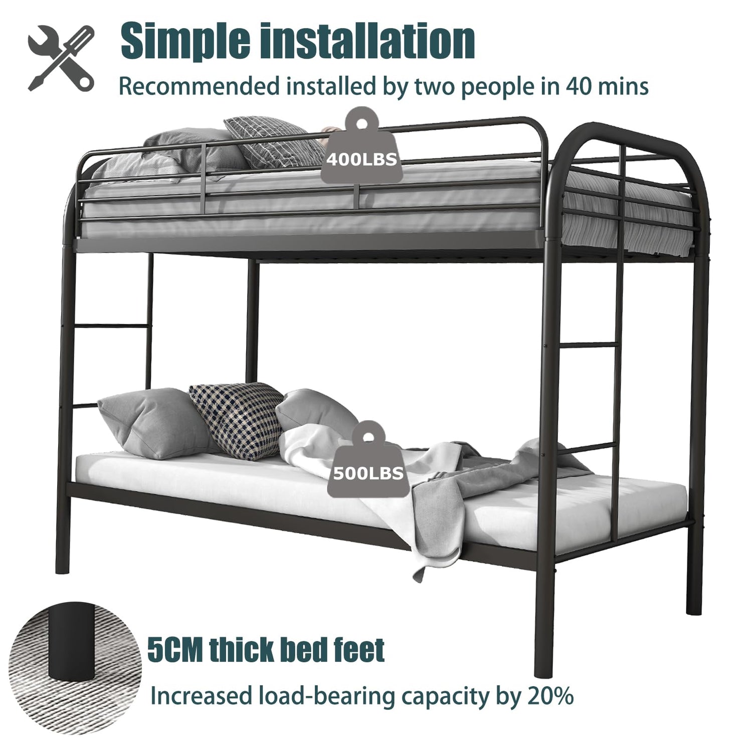 Flolinda Metal Bunk Bed Twin Over Twin, Heavy Duty Bunk Beds with 2 Ladders and 11.8" Full-Length Guardrail, Space-Saving Bunk Bed with Storage, No Box Spring Needed, Easy Assemble, Black