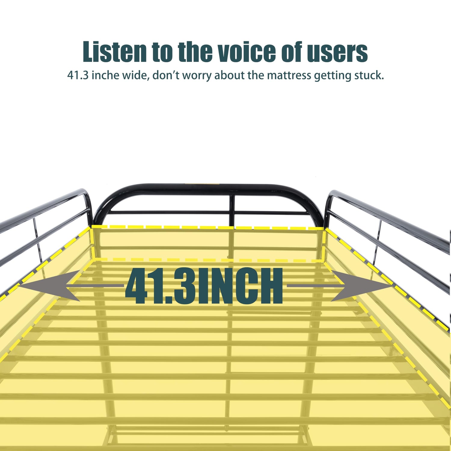 - [Comfortable Sleep] This low profile modern bunk bed features a double ladder design, suitable for different environments; and is mounted on the front and back of the bed, freeing up more space on the side of the bed. The bed width is 41.3", which can easily fit into the mattress