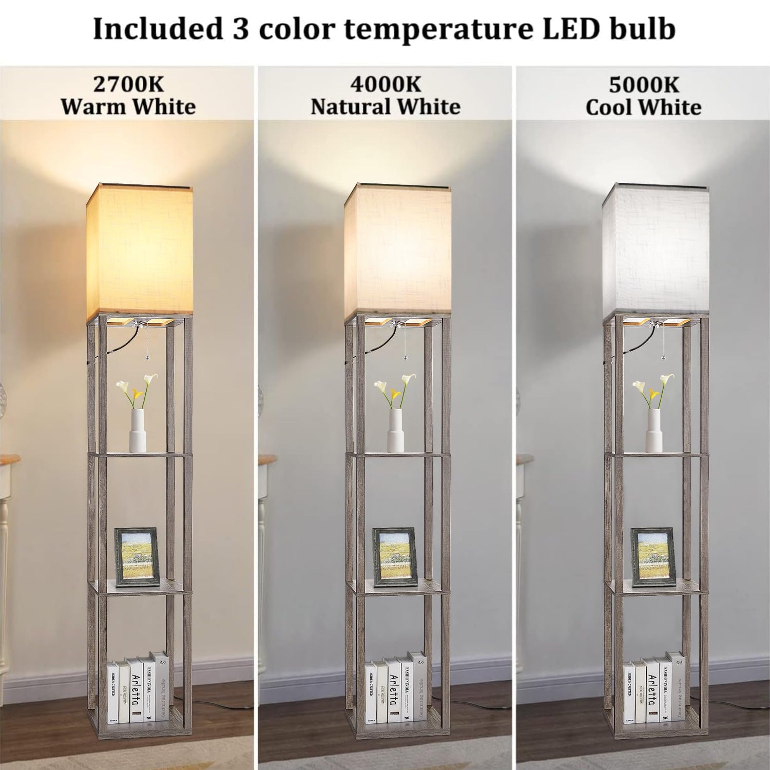 - 【Energy Efficient 3 Color Temperature LED bulb included】: The shelf floor lamp includes 3 color temperatures LED bulb , control the color temperatures by the pull chain easily,LED life time approx. 25000 hours, the LED light source consumes up to 85% less energy and lasts 10 times longer than incandescent bulbs. It not only provides different brightness(2700k/4000k/5000k), but also has a eye caring function while you are reading or working.