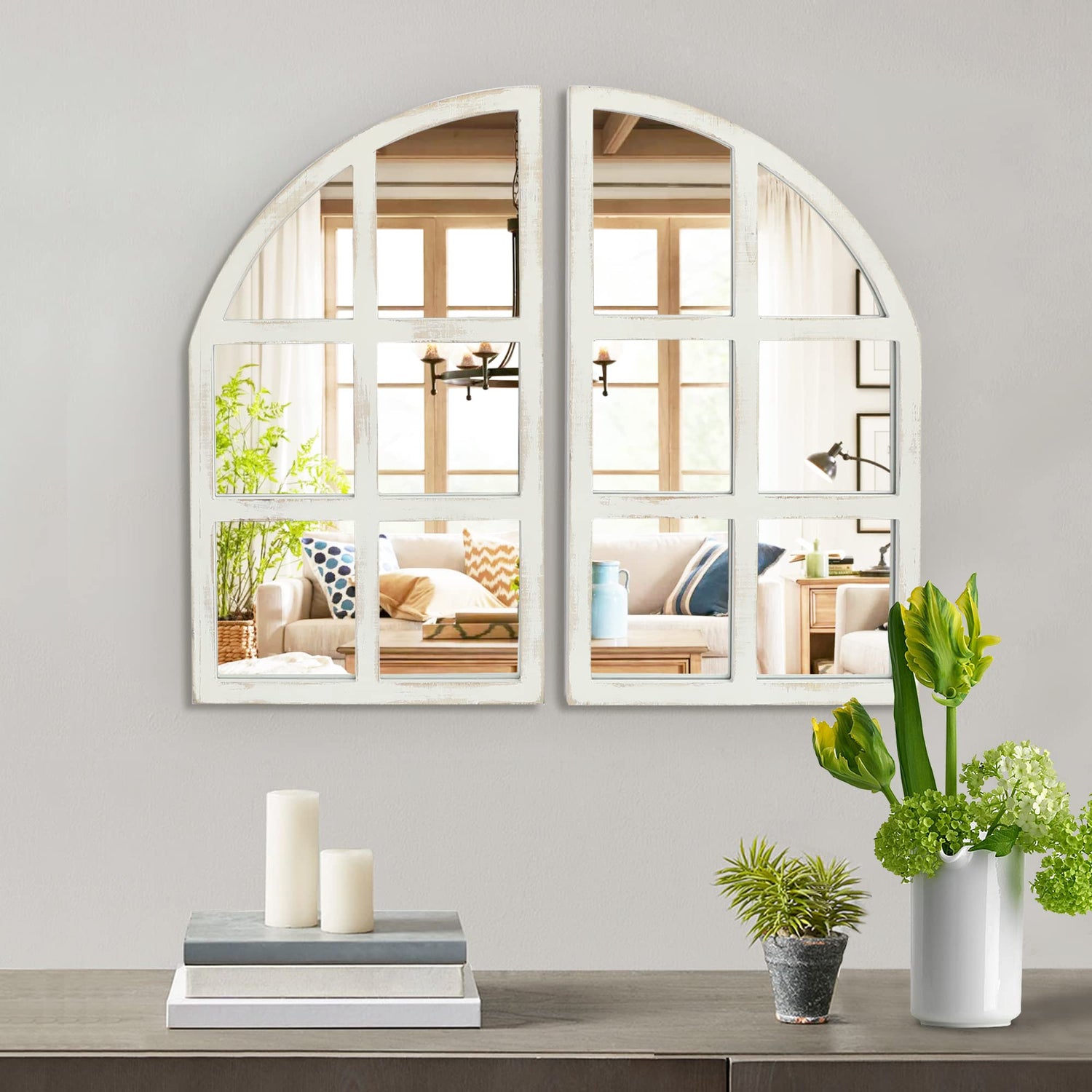 FLORA Farmhouse Mirror, Arch Window Wall Mirror for Kitchen Bedroom Living Room Wall Decor, Set of 2