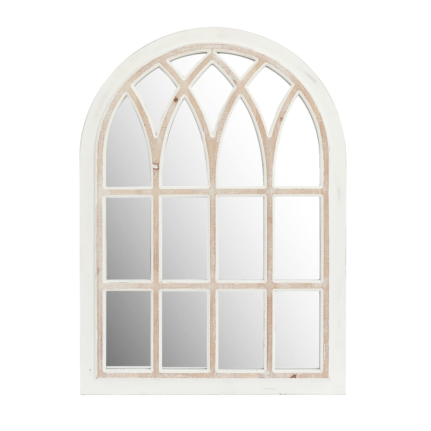 - 【Premium Material】Crafted from sturdy fir wood with a rustic white finish, and featuring curved wood arches, this mirror exudes old-fashioned farmhouse charm.