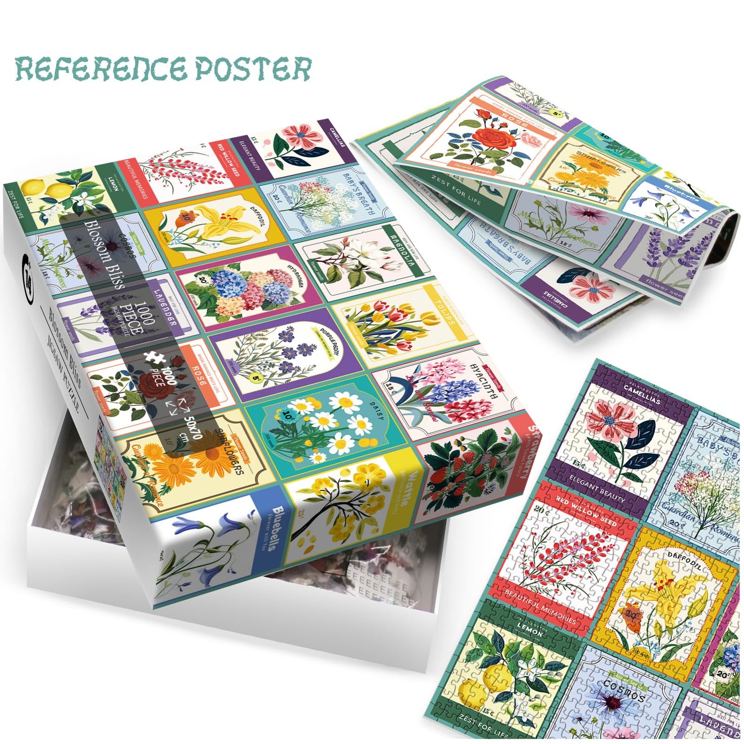 Flower Puzzles for Adults 1000 Piece, Vintage Collage Jigsaw Puzzles, Retro Houseplant Seed Puzzle for Stamp Lovers