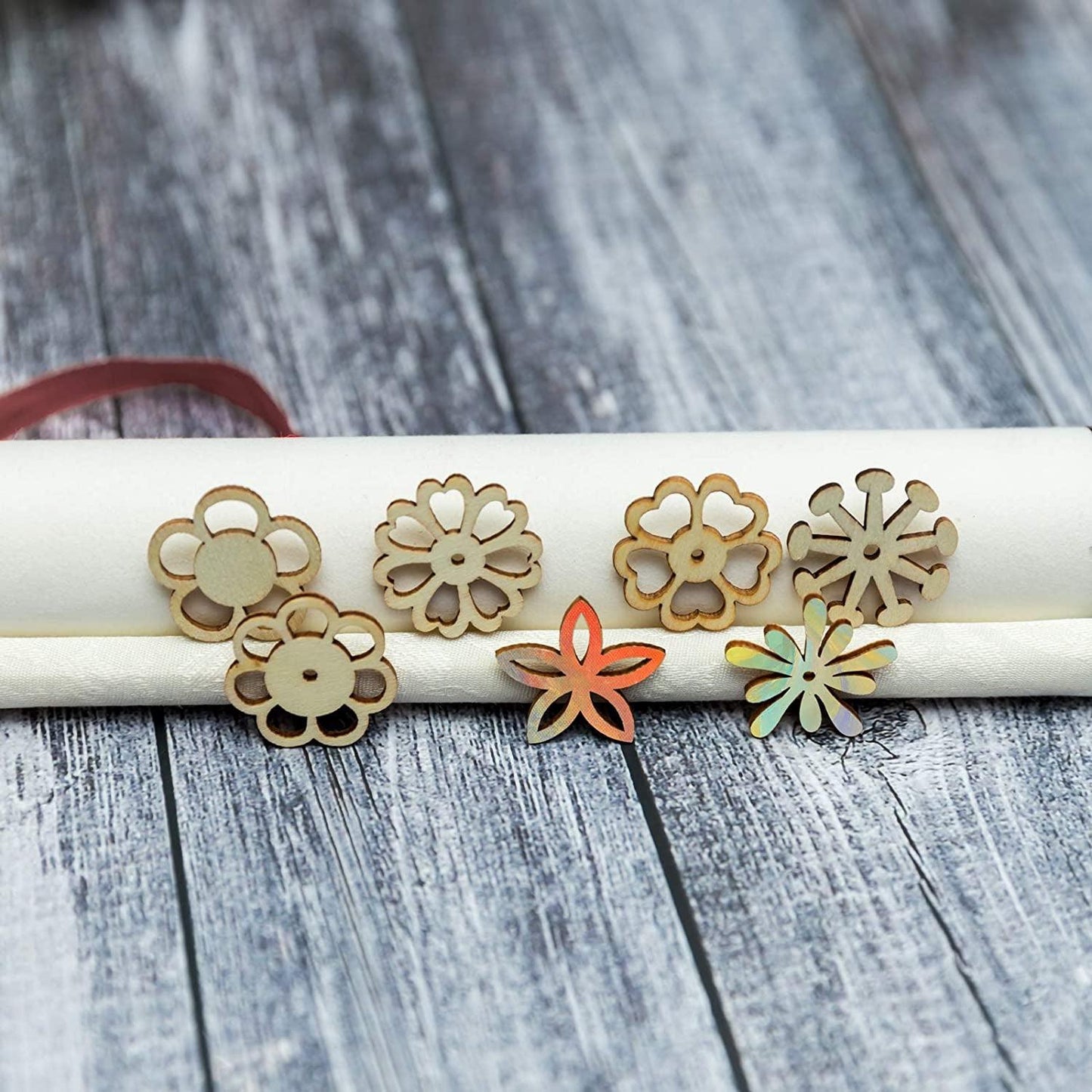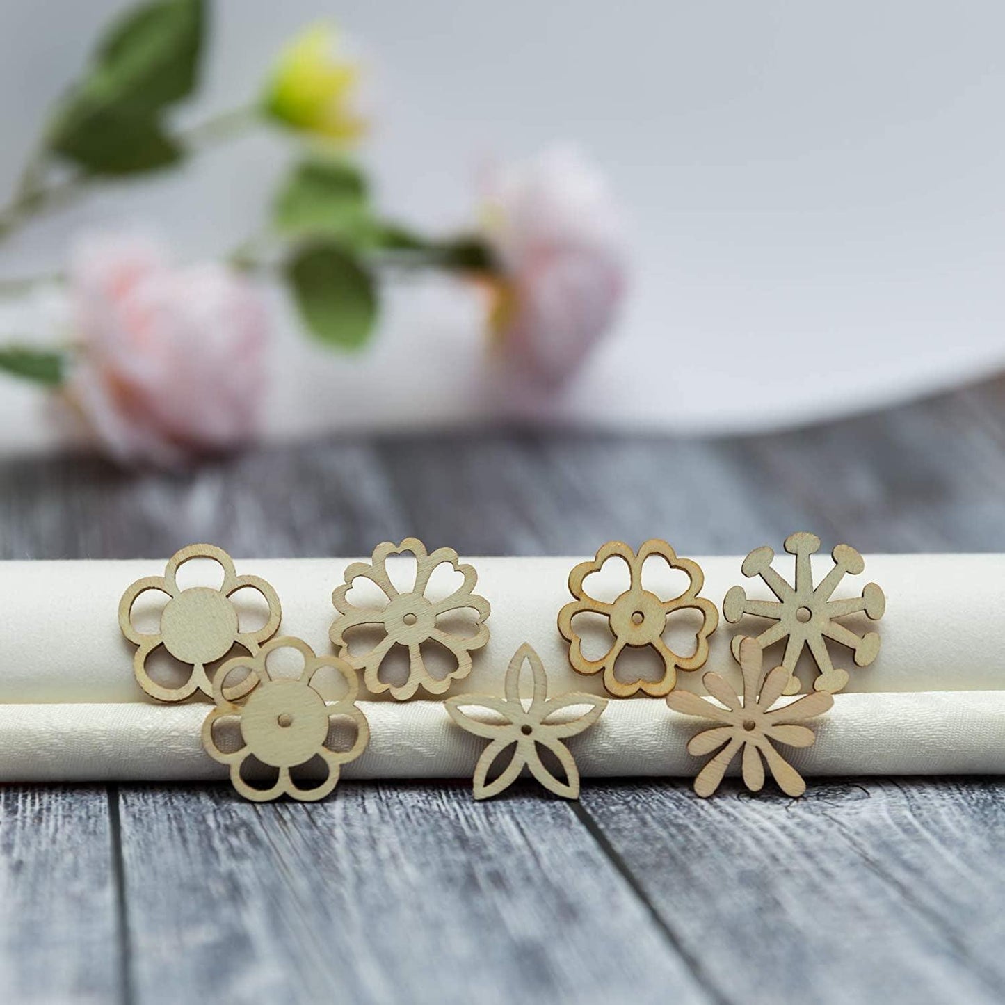 Flower Shape Wood Slices, Unfinished Wood DIY Craft Ornament 100Pcs