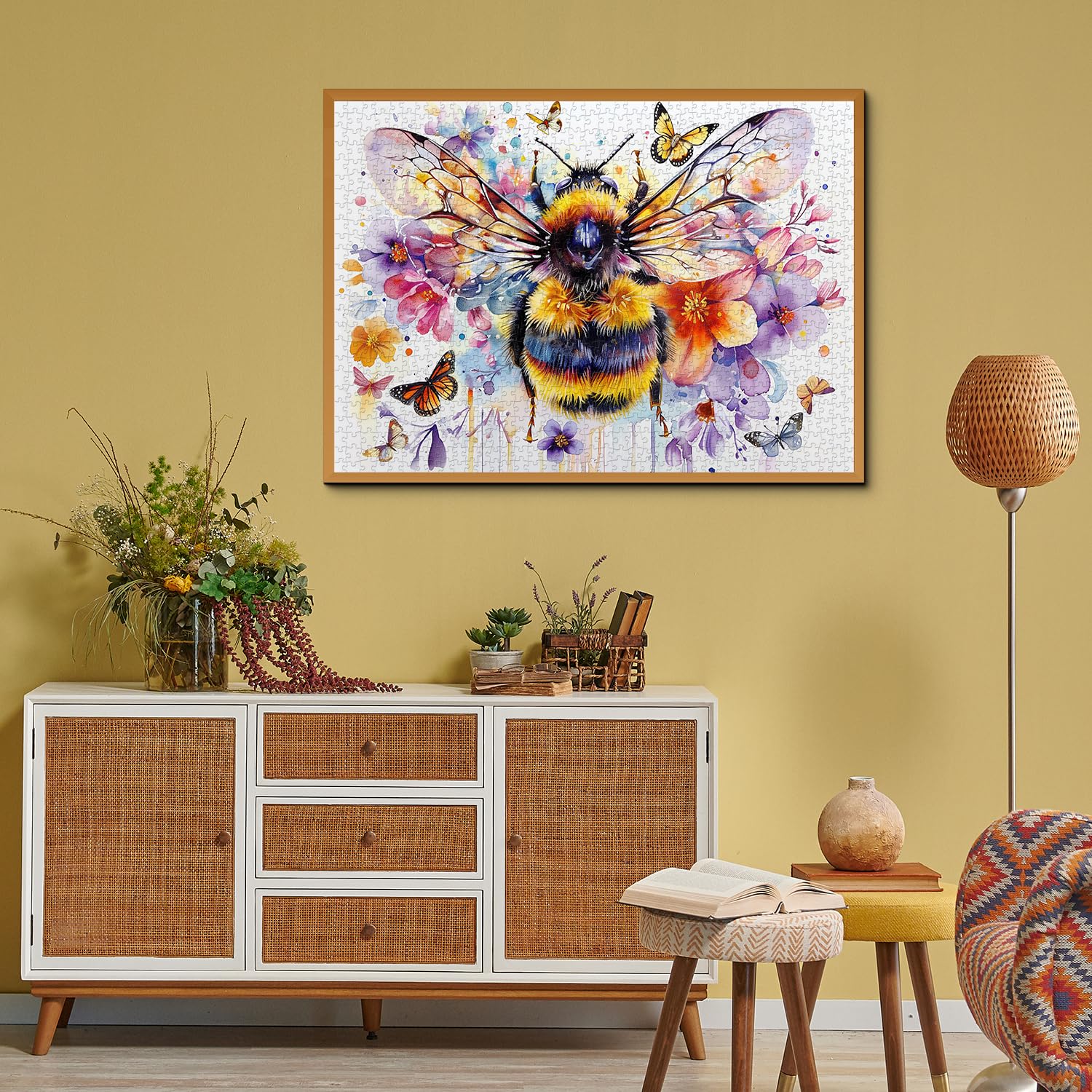 Flowers Bee Puzzles for Adults 1000 Pieces, Garden Bee Butterfly Jigsaw Puzzles, Nature Plant Impossible Animal Art Puzzle as Bee Home Decor
