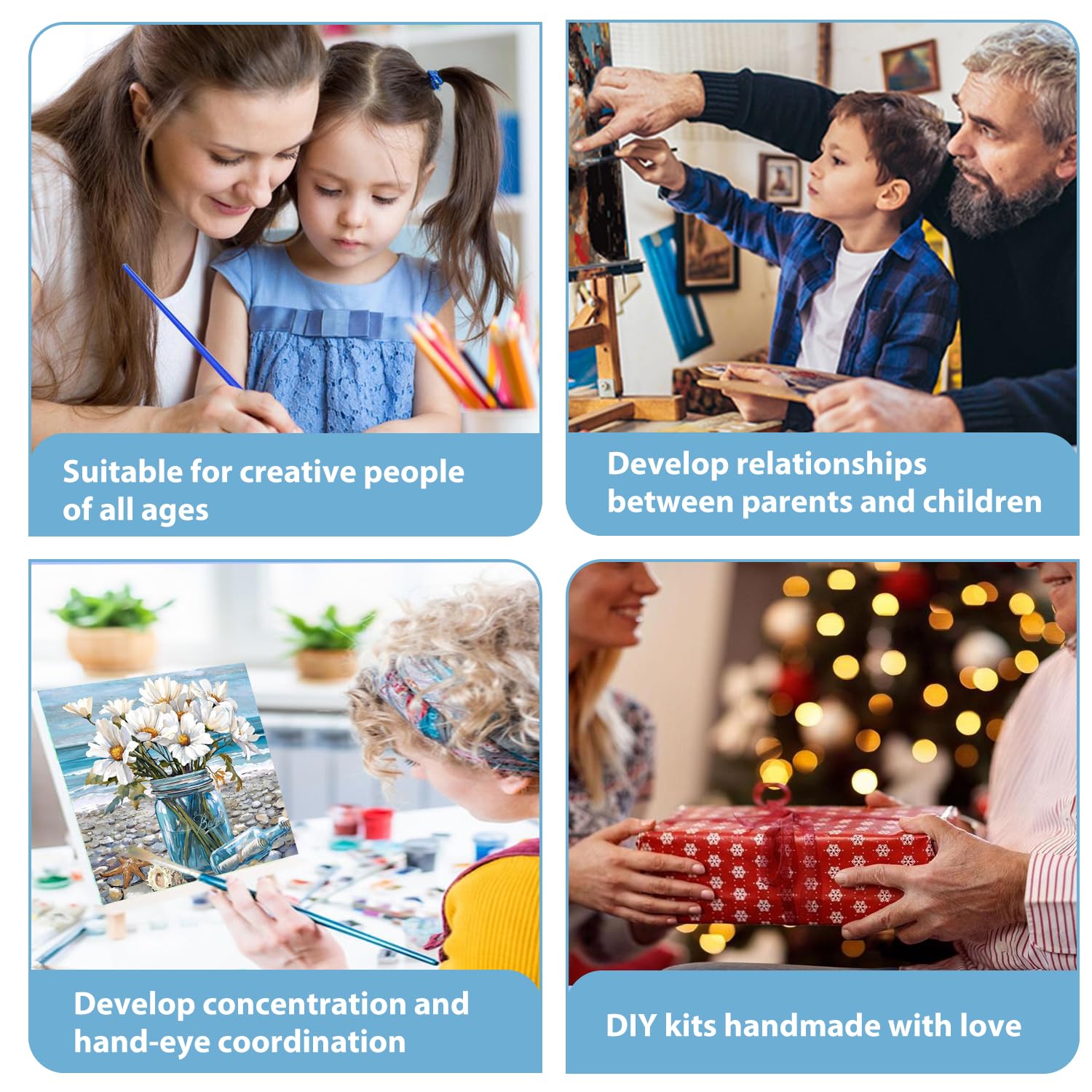 - Relax and joyful:In the process of paint by number kits,you can focus your attention to relieve pressure and tension,and devote yourself to the process of creating paintings;it can not only cultivate patience,but also relieve your pressure,adjust your mood,and enjoy yourself in the process of creation