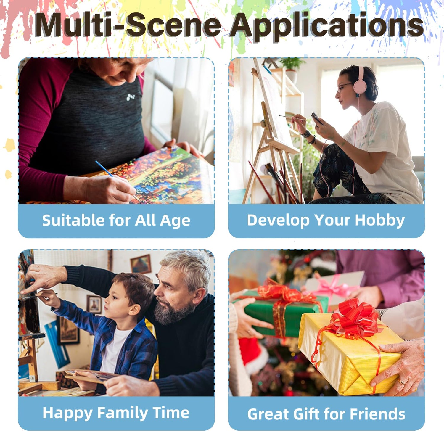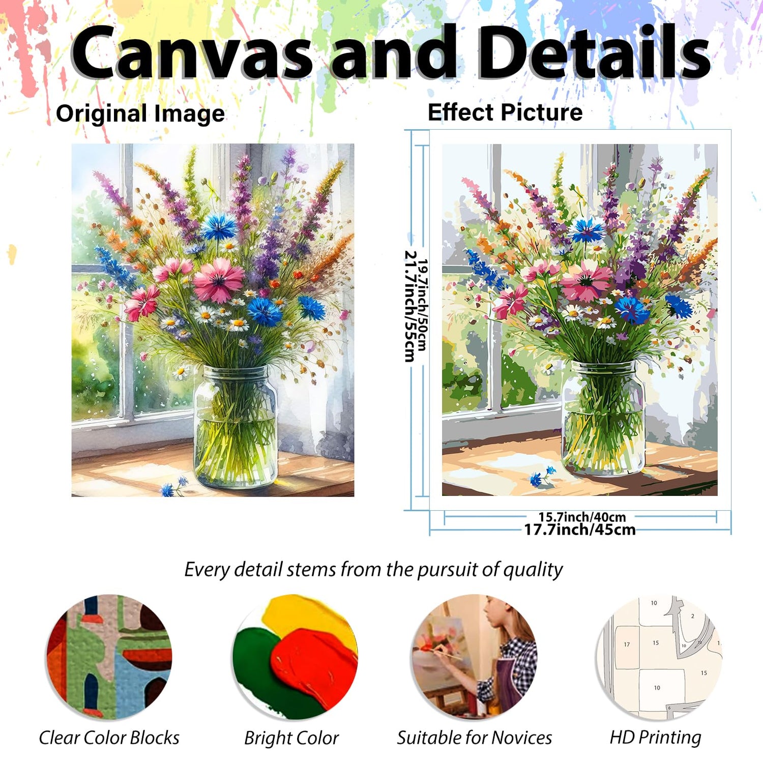 - What You Get: With paint by numbers for adults, you will get: 1x HD waterproof canvas, 1x matched acrylic paints,1 set of high-quality brushes (including large and small brushes), and reference pictures of finished products