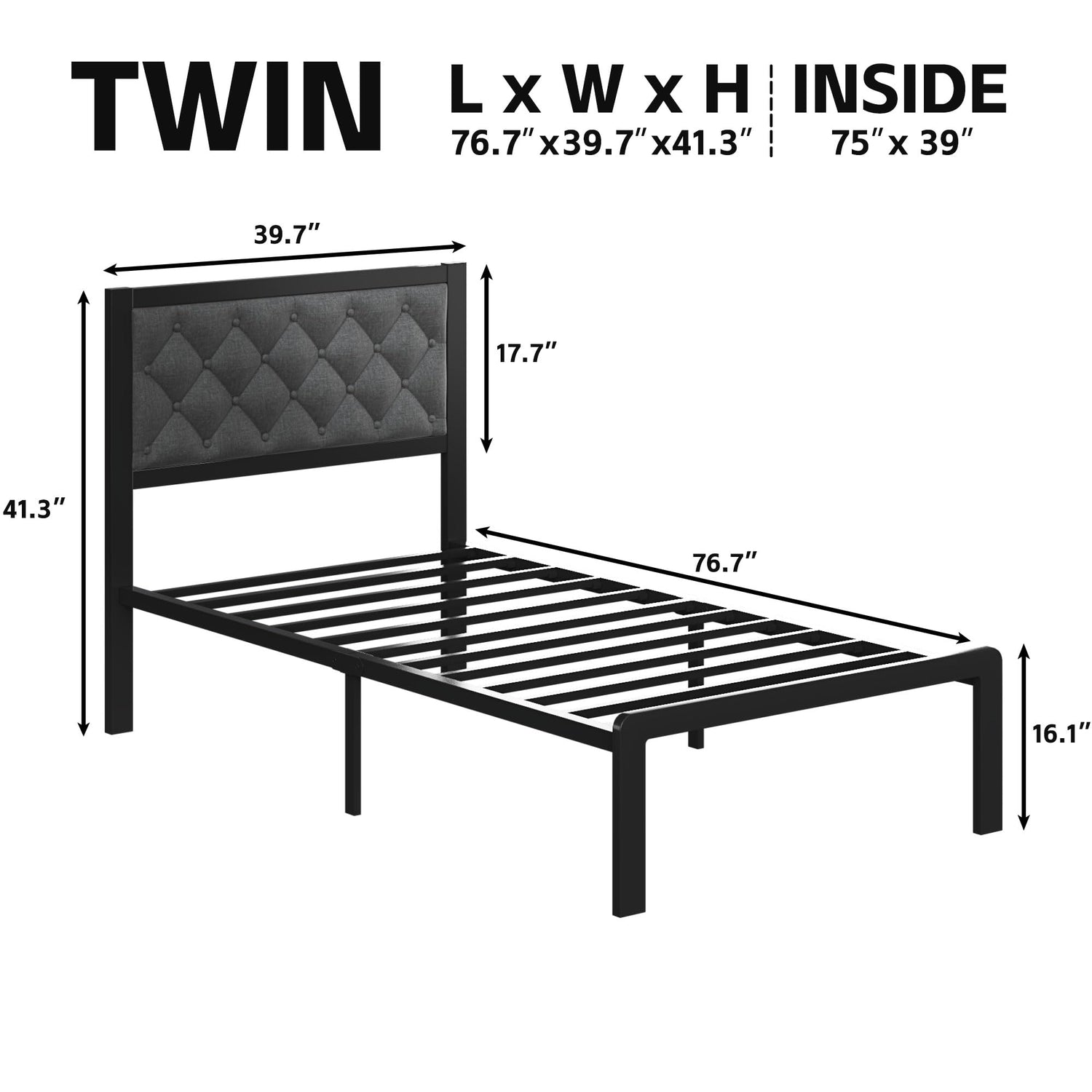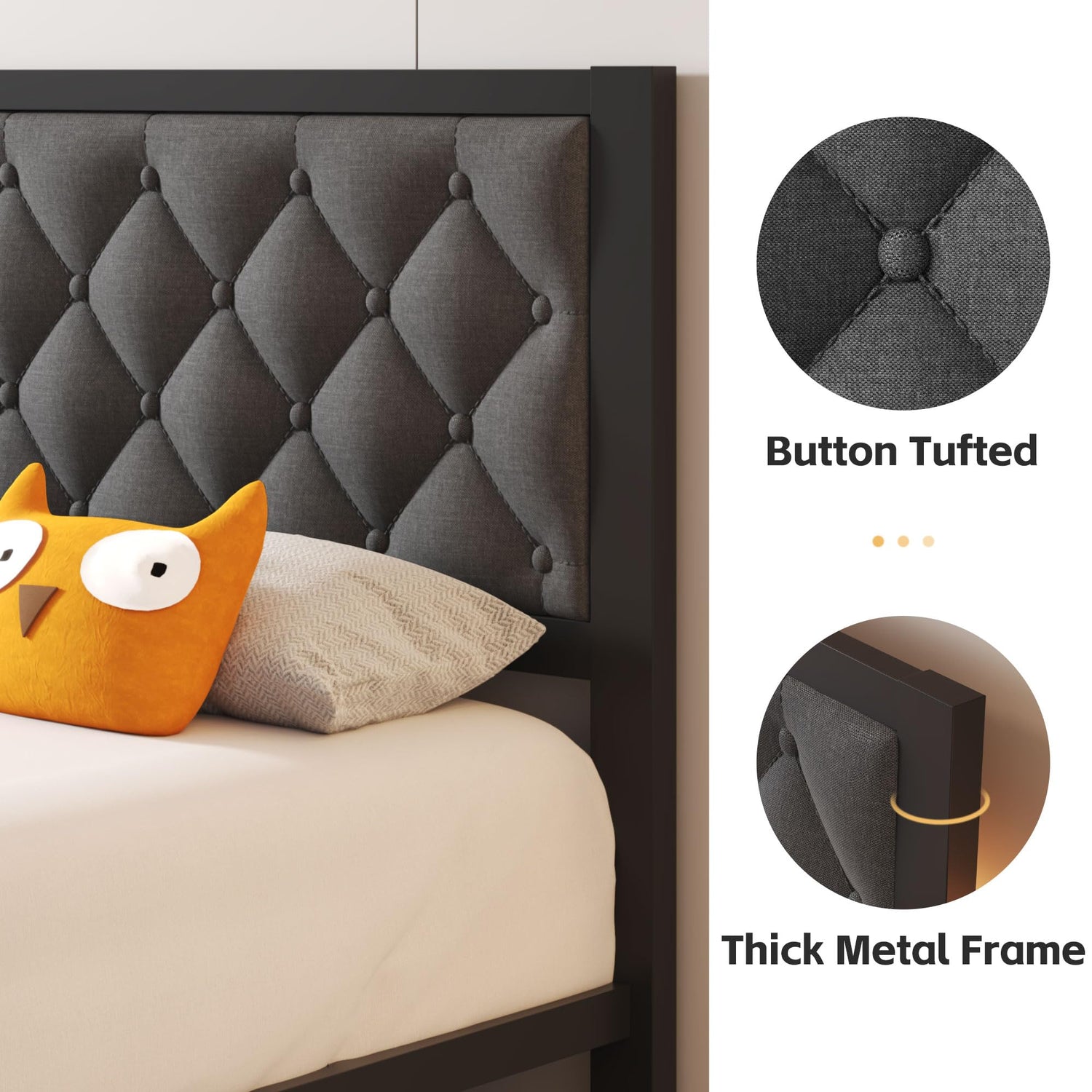 Fluest Twin Bed Frame with Headboard Linen Upholstered Bed Frame Platform,All Metal Slats Support Platform Bed Frame with Storage Space,Easy Assembly,Noise Free,No Box Spring Needed,Grey