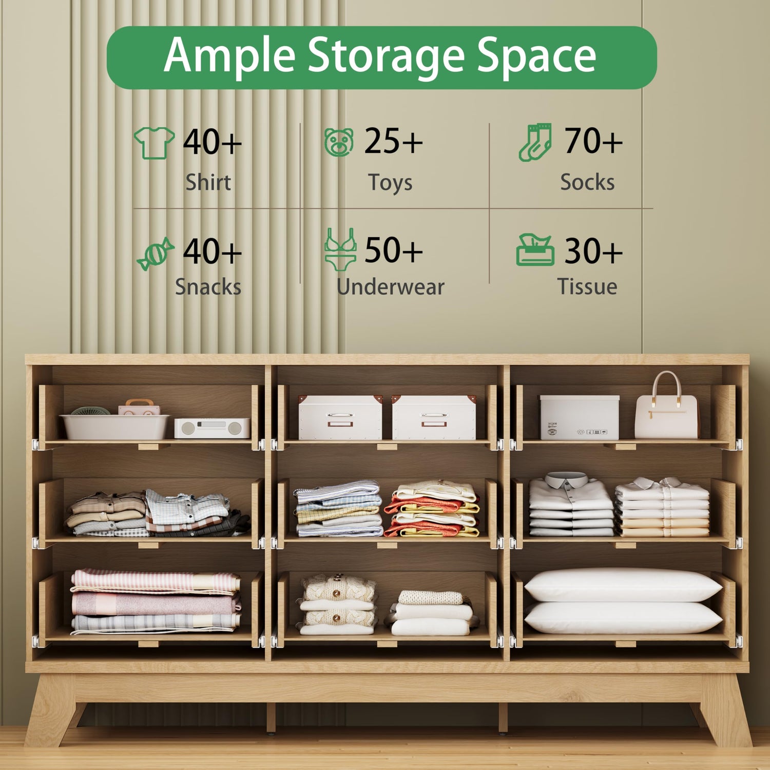 - 【Stability & Safety】The white/black/natural oak dresser is equipped with an anti-tipping device, which can be fixed on the wall to prevent accidents. Each drawer contains a wide metal handle and built-in slide rail, easy to push and pull. Besides, the sturdy base provides this dresser with drawers a strong support and the middle feet can be adjustable to keep balance on uneven floors