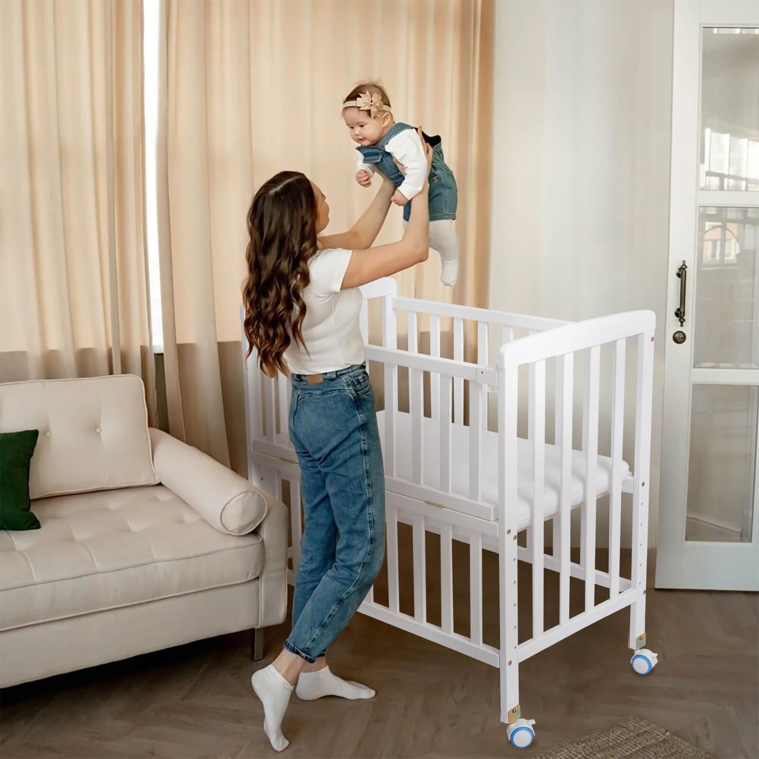 Our beside crib model is very practical, especially at night when it can be close to mom's bed, close to mom without taking up space in her bed.Both mom and baby can rest more peacefully