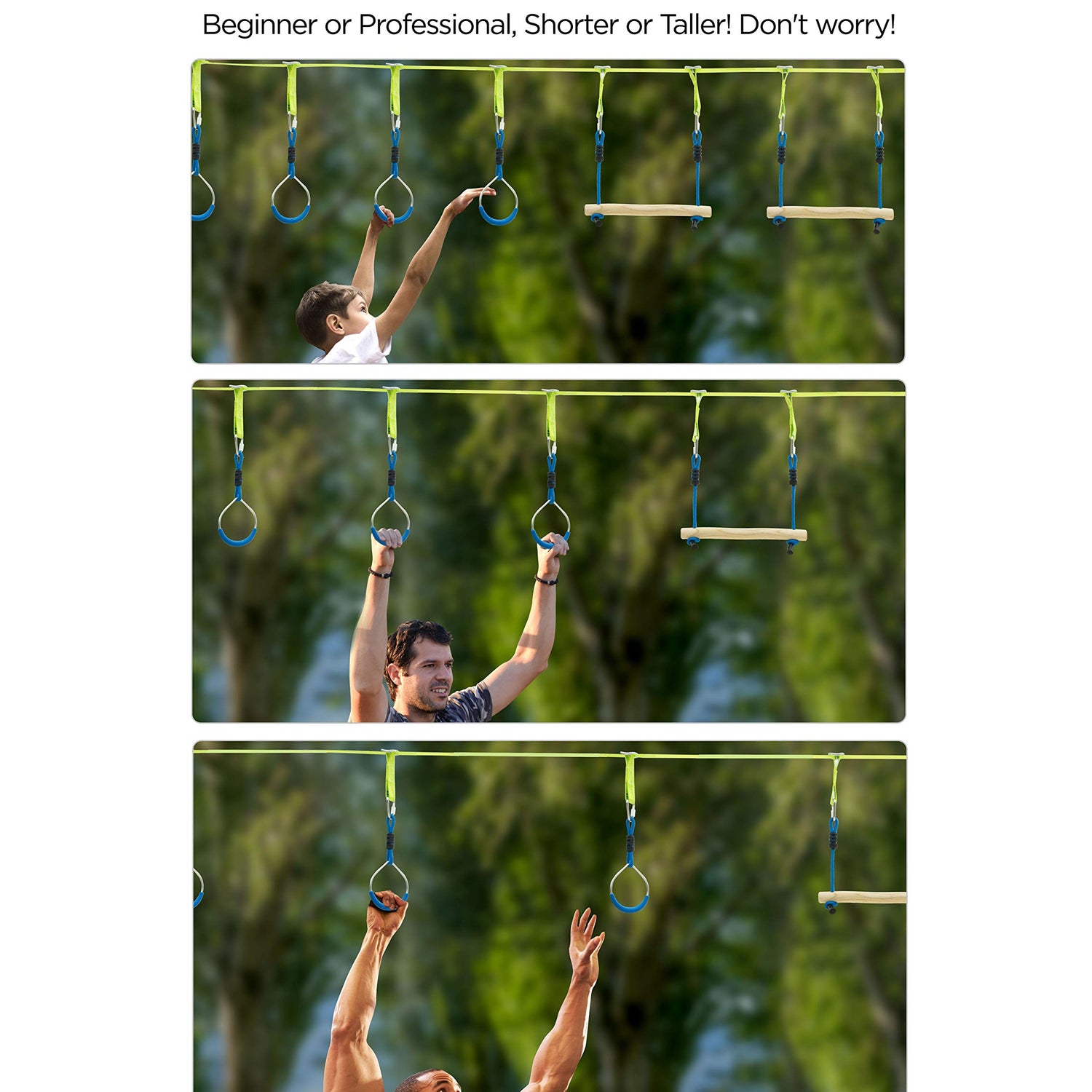 - Adjustable and Customizable: Easily adjust the obstacle spacing to fit your skill level or use the line as a slackline for kids, fostering balance, coordination, and motor skills
