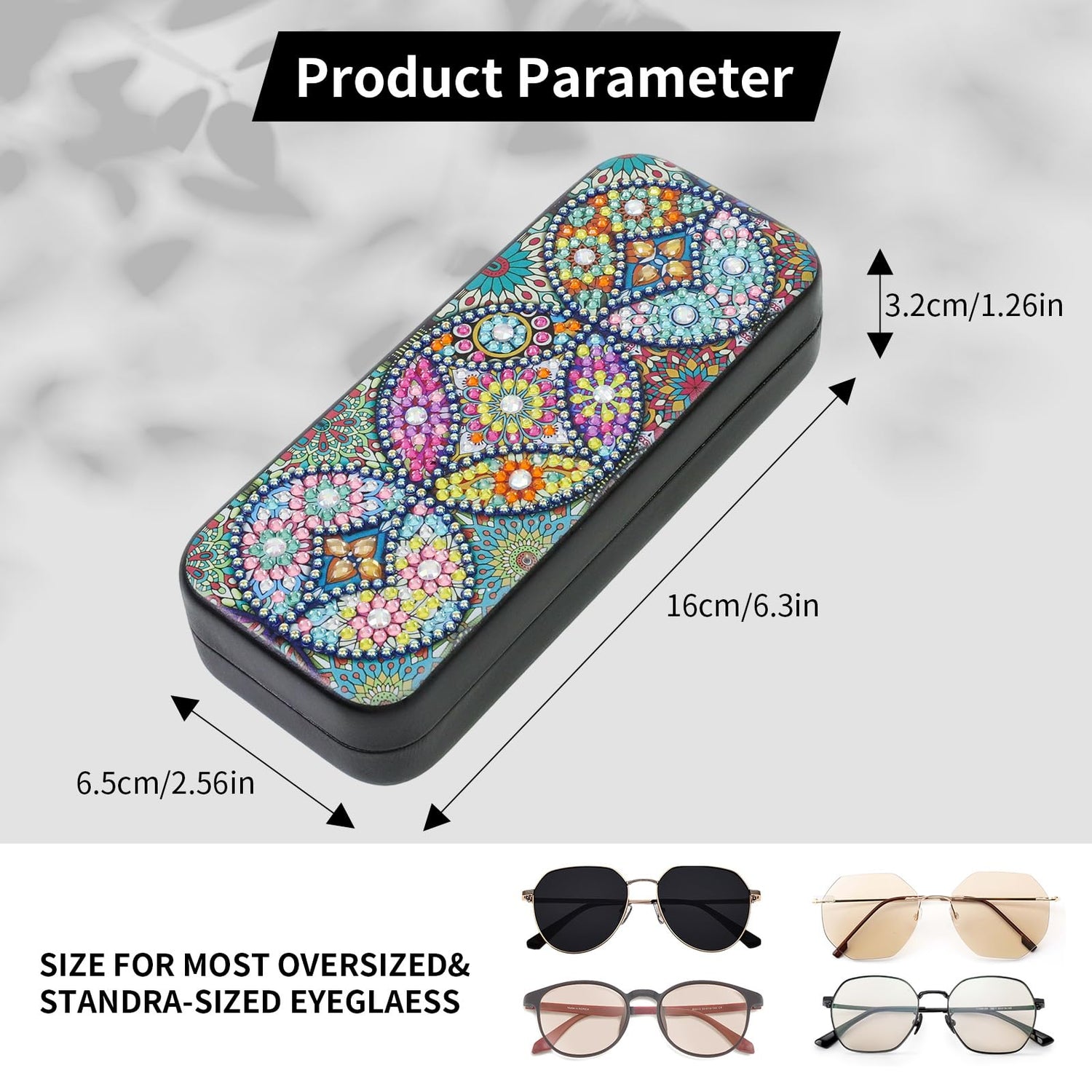 - [High Quality Gem Art,Sturdy and Full Protection]: The diamond art for adults and little family members is made of premium quality PU leather and metal shell material exterior, velvet interiors - soft protective lining, which can protect your glasses from the cracking on the lenses and damages to the frame caused by the strong external force effectively, keep your eyewear always safe and clean. The glass case safeguards your glasses from scratches, dust, and impacts.