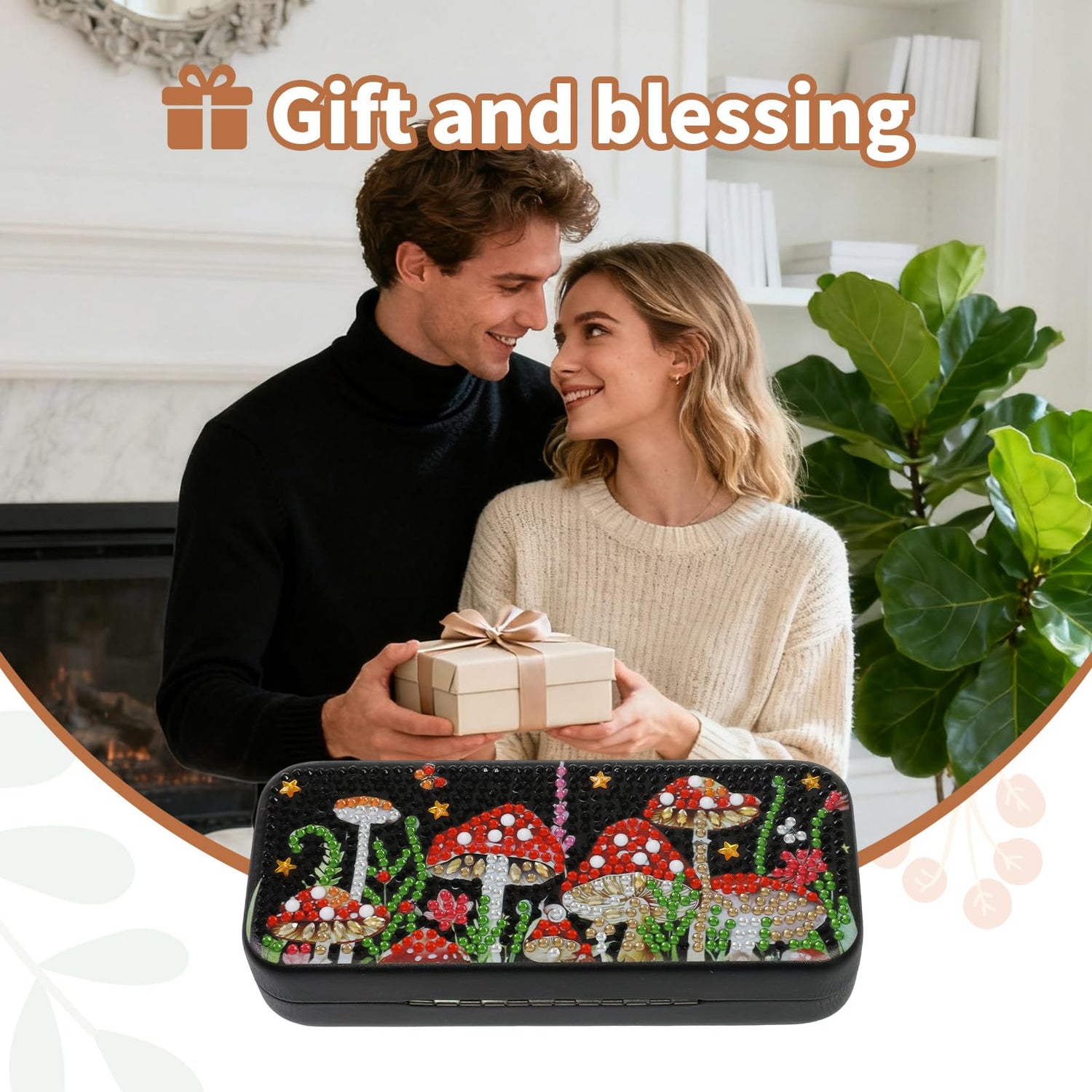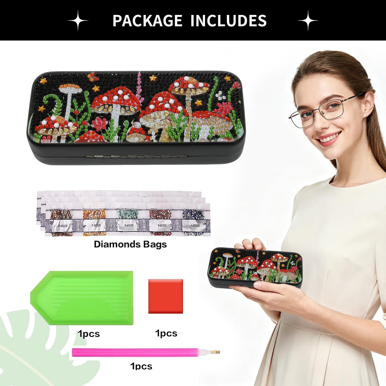 FlyingMage 5D Diamond Art Painting Kit for Adults Beginner, Small DIY Diamond Dots Gem Art Painting Mosaic Kits, Cute Hard Shell Sunglasses Eyeglasses Glasses Case for Women Teen, Mushroom