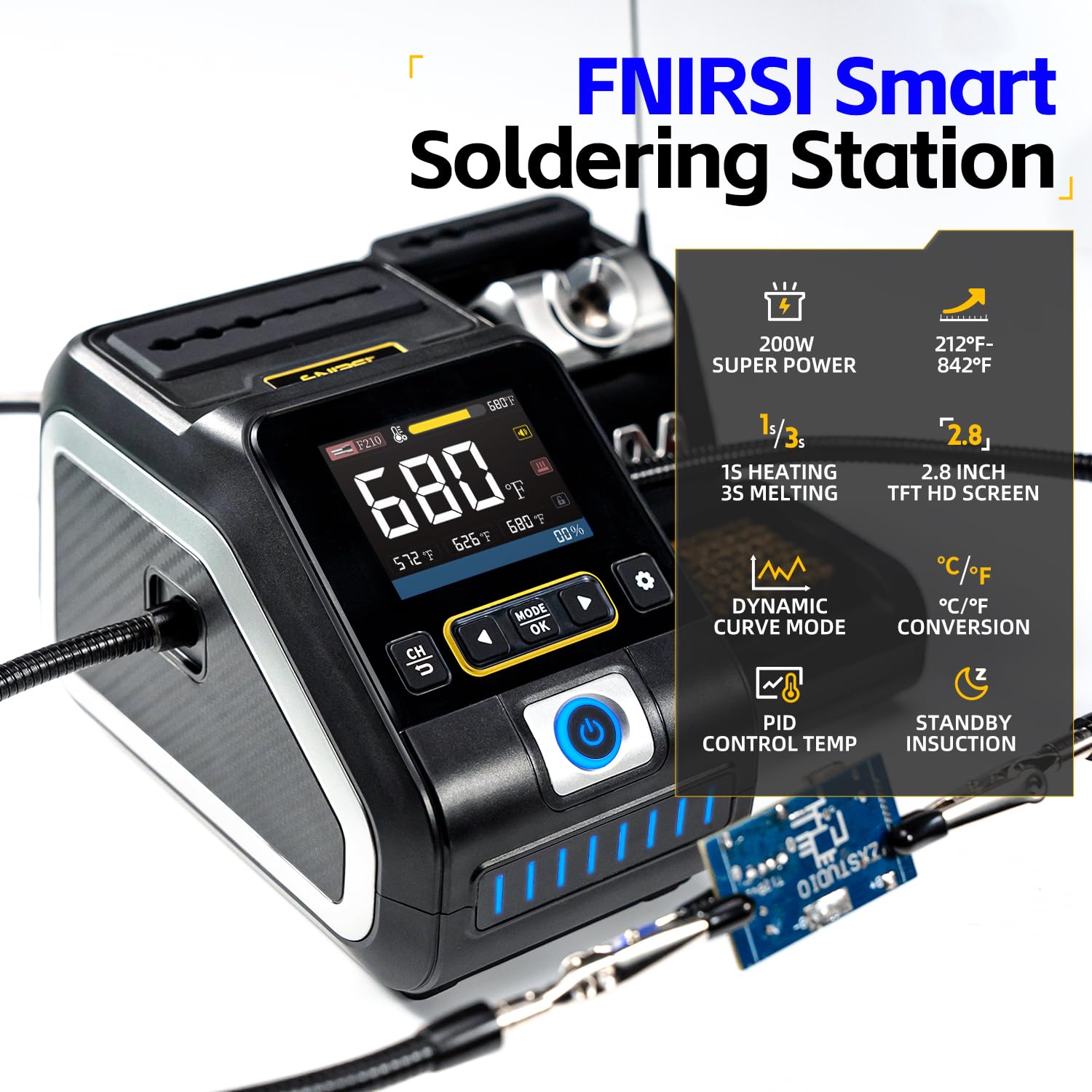 FNIRSI DWS-200 200W Precision Digital Soldering Station Kit, with 3 F210 & 6 F245 Soldering Iron Tips and 2 Helping Hands, Temp Value & Curve Mode, 3 Temperature Storage, Full-Color Display