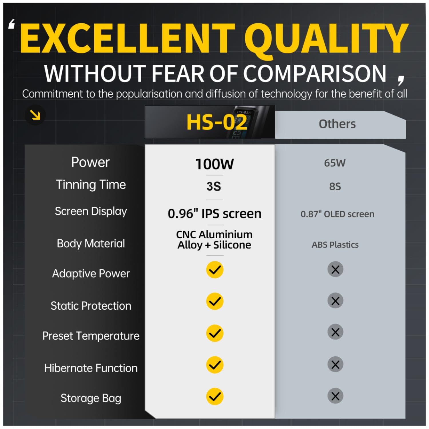 - 【FNIRSI HS02 Soldering Iron】We upgraded HS01, HS02 has a better grip, shorter tip, larger 0.96'' display, and faster heating speed.It is suitable for electronic component repair, jewellery repair, circuit board soldering, micro soldering.